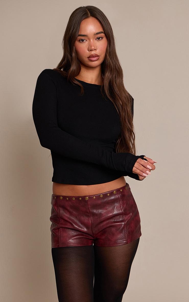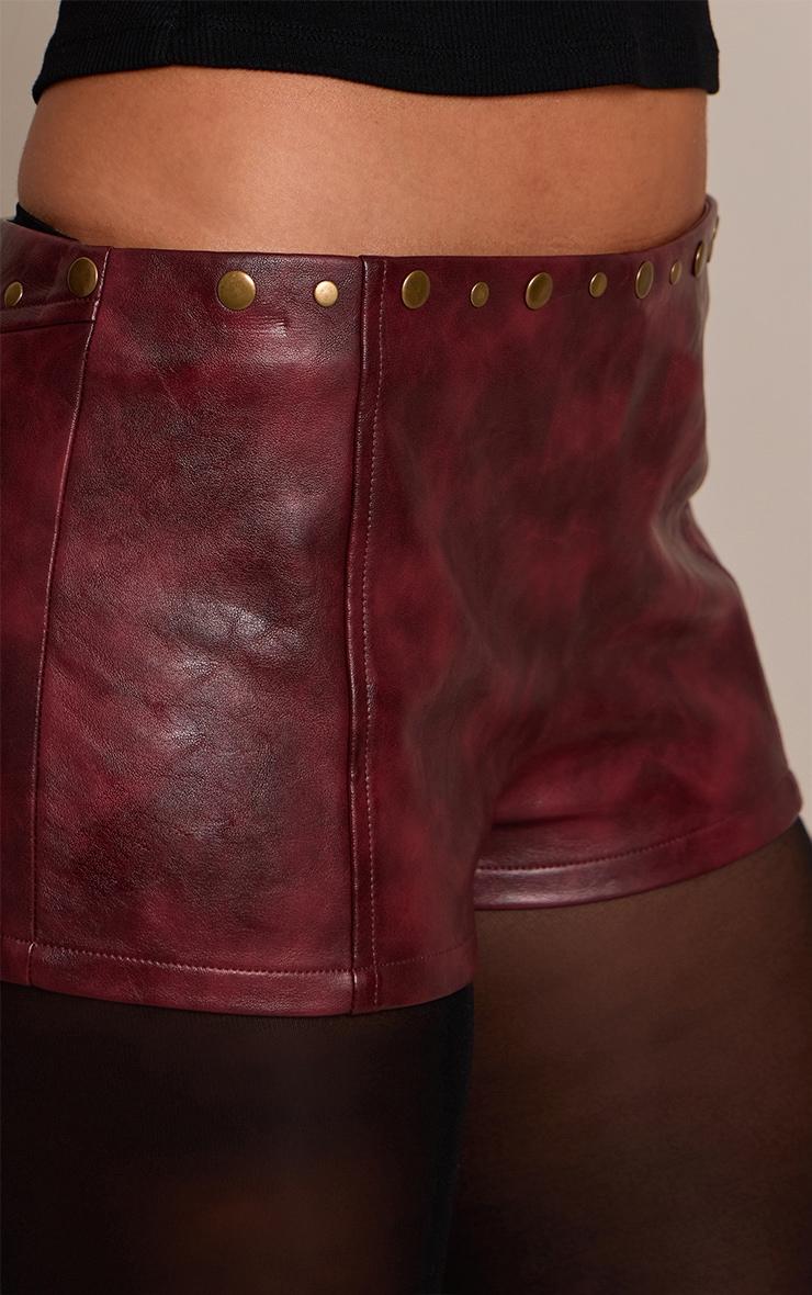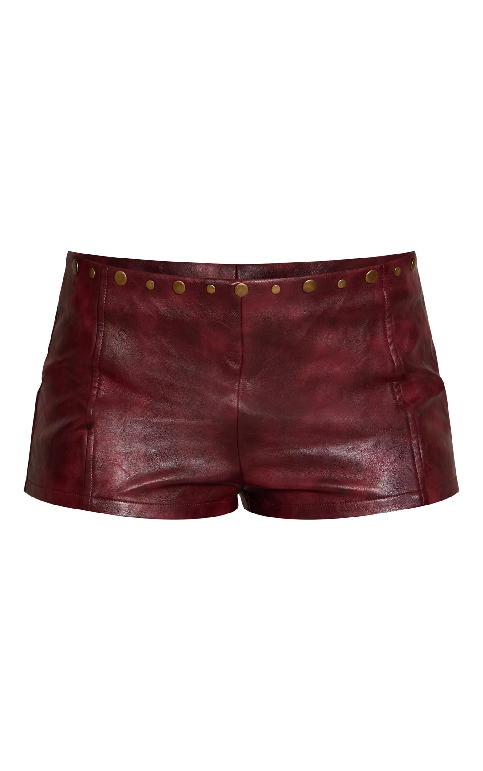 Channel bold energy with these burgundy faux leather studded hot Pants. With their eye-catching hue and studded details, they’re perfect for making a statement. Style with a mesh bodysuit and platform heels for a night-out edge, or go casual with a cropped hoodie and sneakers.Length approx 33cm/13inch (Based on sample size US 4)Model wears size UK 8/ EU 36/ AUS 8/ US 4Model Height - 5ft 8inchp]:!mb-4inch>Brand: PrettyLittleThingCategory: BottomsProduct type: Hot PantColor: BurgundyMaterial: Faux LeatherOccasion: Evening