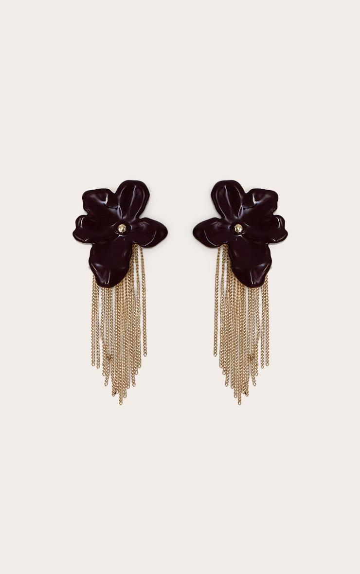 Command attention with these striking burgundy flower gold chain drape earrings. Each piece features a deep burgundy flower stud from which intricate gold chains elegantly cascade, catching the light with every turn. These aren't just earrings; they're the ultimate statement for any evening ensemble. Pair them with a sharp little black dress and elegant black high heels, finishing your look with a structured clutch bag for an undeniably polished and self-assured air.p]:!mb-4inch>Brand: PrettyLittleThingCategory: AccessoriesProduct type: Statement EarringsColor: BurgundyMaterial: PlasticOccasion: Evening