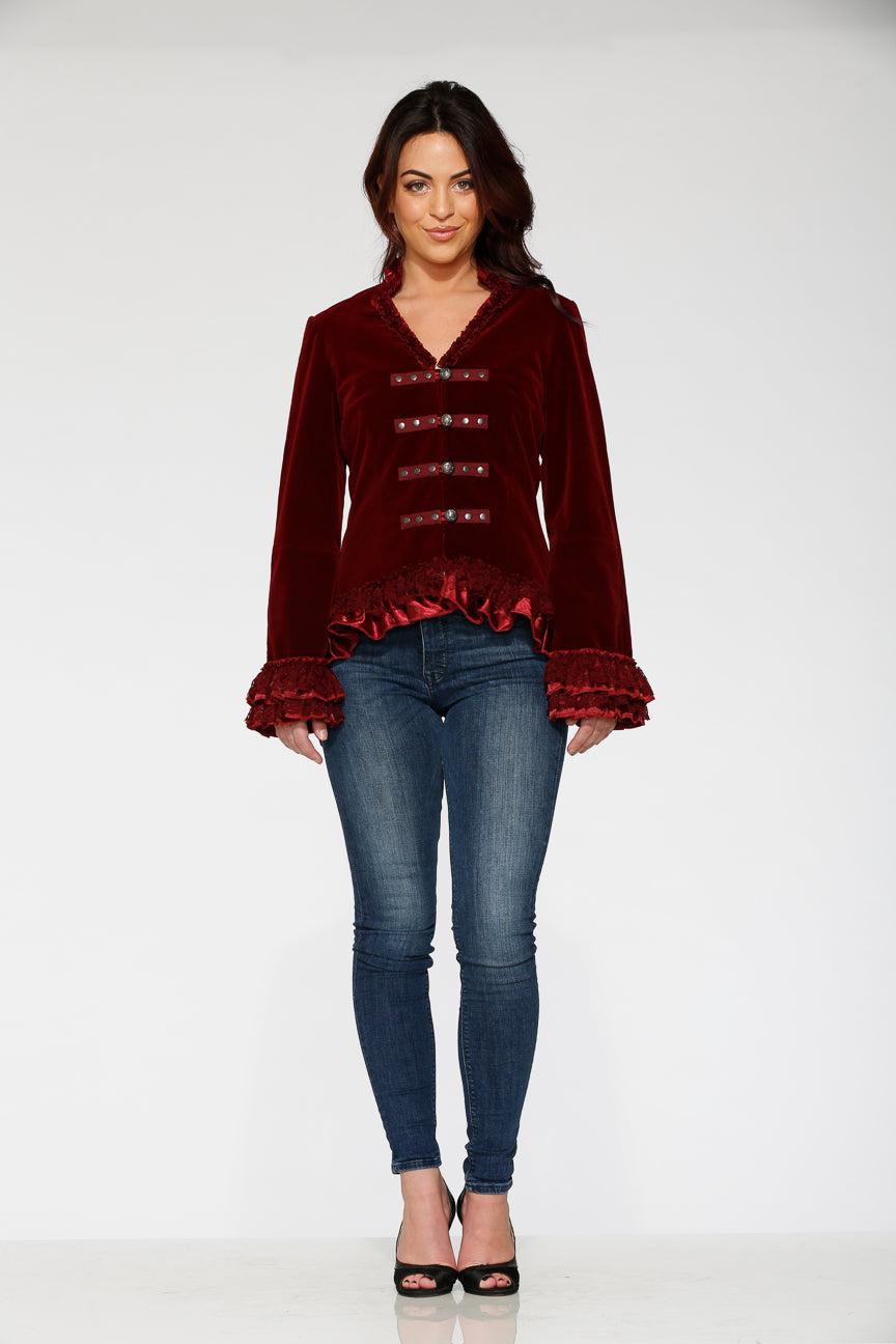 Burgundy Gloria Velvet Tailed Jacket Product Image