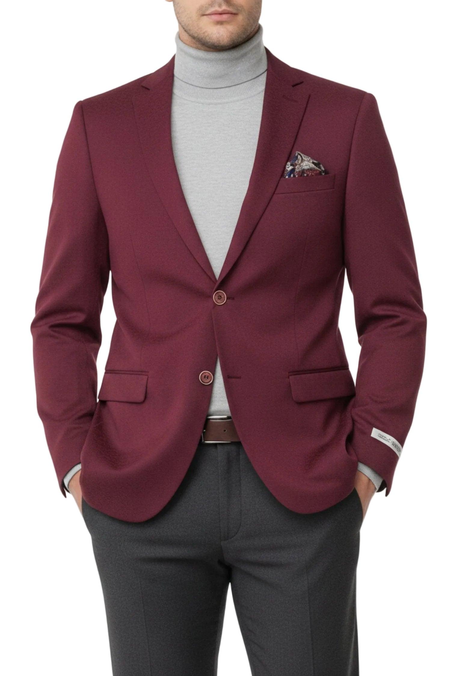Burgundy Hybrid Fit Single Breasted Notch Lapel Jacket