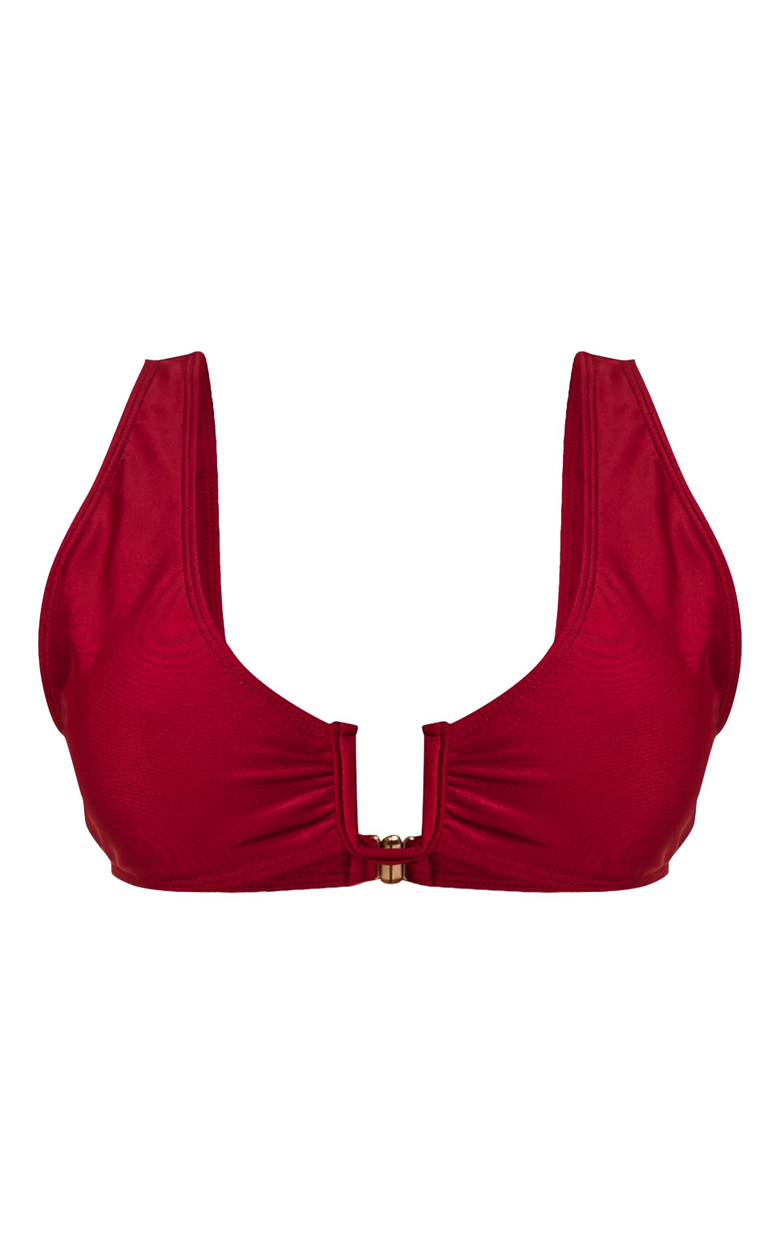 Level up your look in this burgundy plunge U bar bikini top. Made from a standout burgundy material with a deep plunge neckline and gold U bar hardware. Team with matching bottoms and a pair of sandals for a look we are loving right now.Length approx 29cm/11.5inch (Based on sample size US 4)Model wears size UK 8/ EU 36/ AUS 8/ US 4Model Height - 5ft 8inchp]:!mb-4inch>Brand: PrettyLittleThingCategory: SwimwearProduct type: Plunge Bikini TopColor: BurgundyMaterial: SwimDesign: PlainOccasion: Day