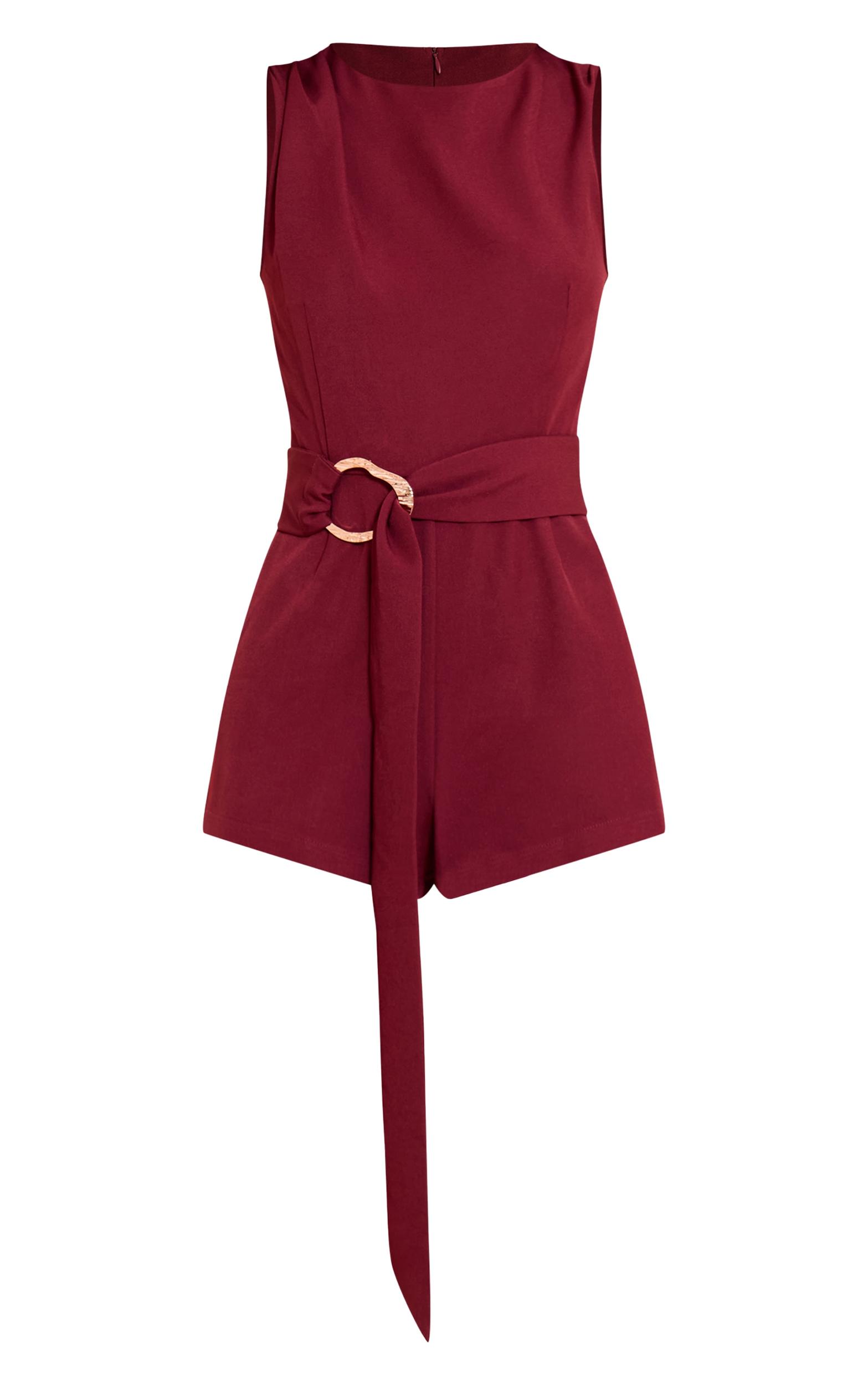 Stay chic in the burgundy woven crew neck belt romper. Made from a burgundy woven material, it features a crew neckline, belted waist, and romper cut. Style with slip on mule heels and a clutch bag for an effortlessly chic finish.Length approx 81.5cm/32inch (Based on sample size US 4)Model wears size UK 8/ EU 36/ AUS 8/ US 4Model Height - 5ft 7inchp]:!mb-4inch>Category: DressesProduct type: Tailored PlaysuitColor: BurgundyMaterial: Tailored WovenOccasion: Evening