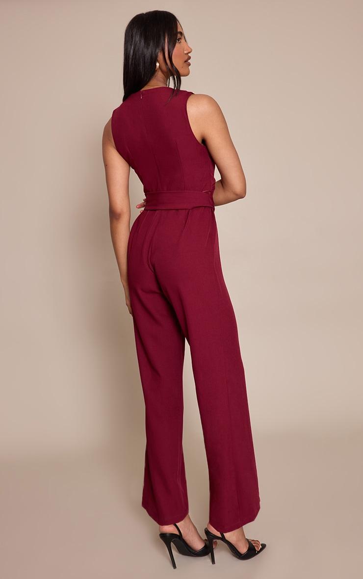 Step out in confidence wearing the burgundy woven crew neck belt wide leg jumpsuit. Crafted from burgundy woven fabric with a cinching belt and sweeping wide legs, it delivers a clean, elongated line. Pair with pointed courts and a gold cuff for pared-back sophistication.Length approx 155cm/61inch (Based on sample size US 4)Model wears size UK 8/ EU 36/ AUS 8/ US 4Model Height - 5ft 9inchp]:!mb-4inch>Category: DressesProduct type: Tailored JumpsuitColor: BurgundyMaterial: Tailored WovenOccasion: Evening