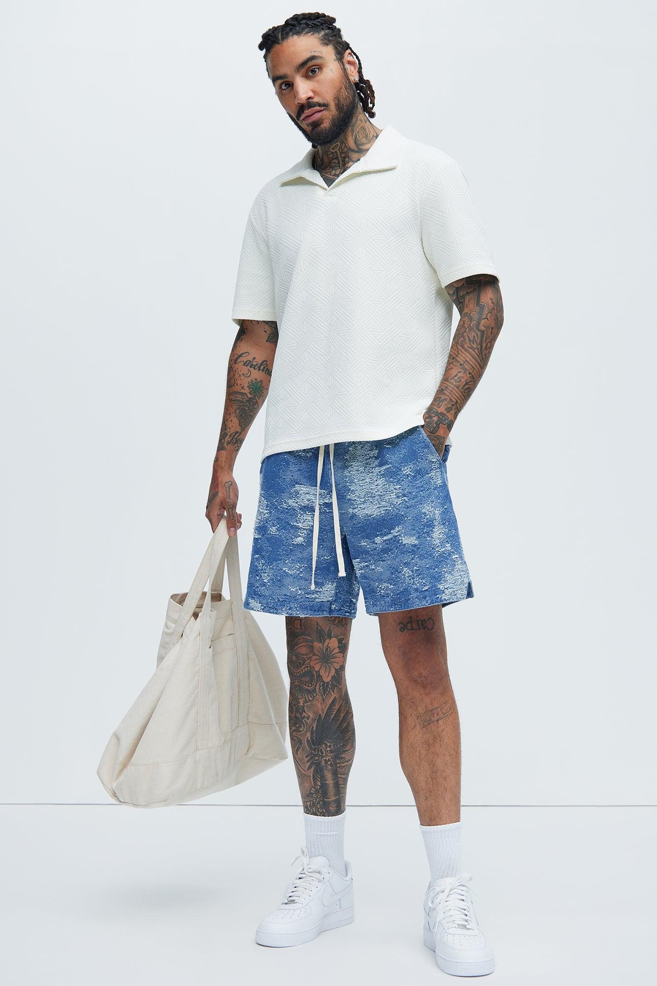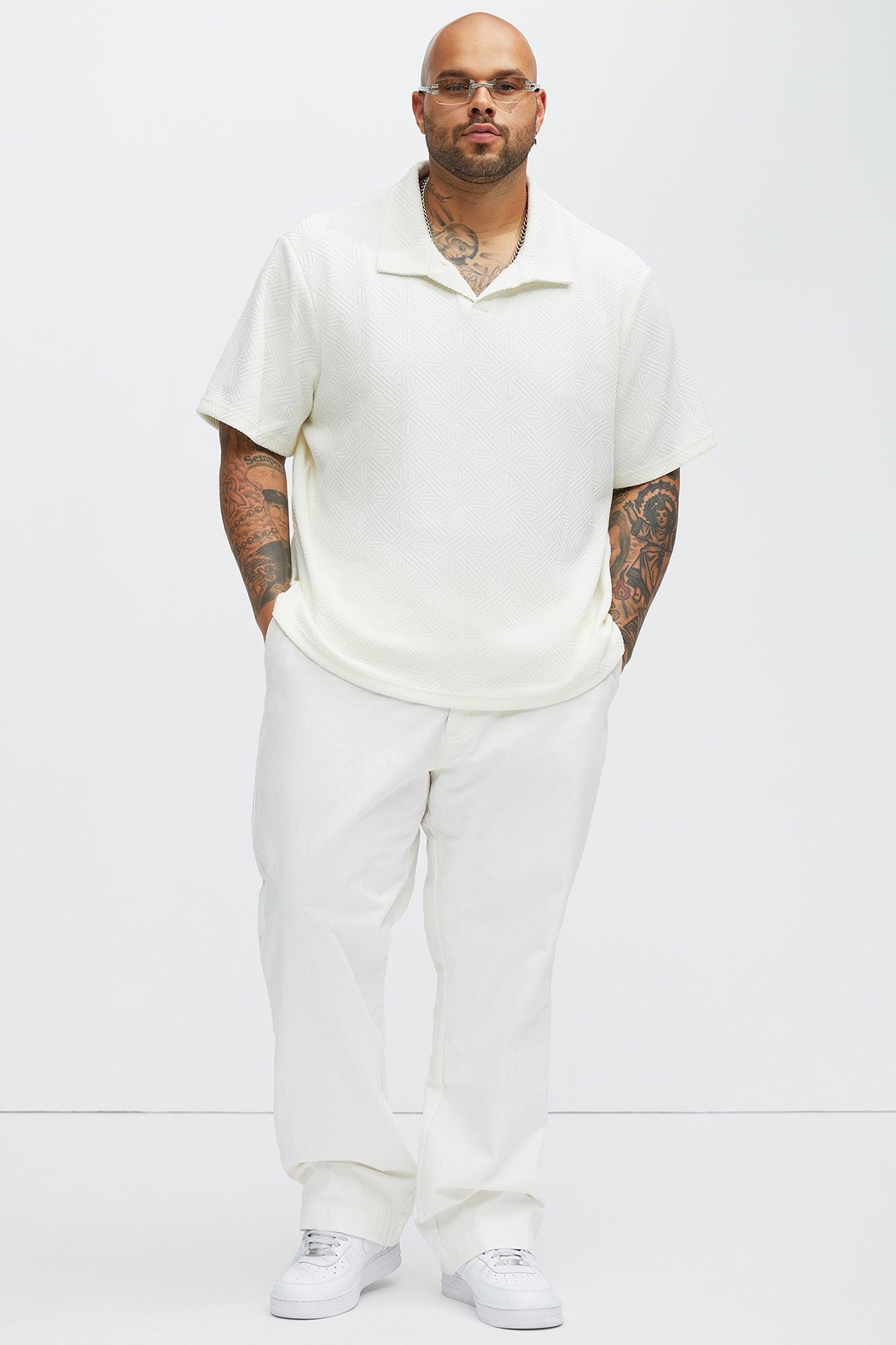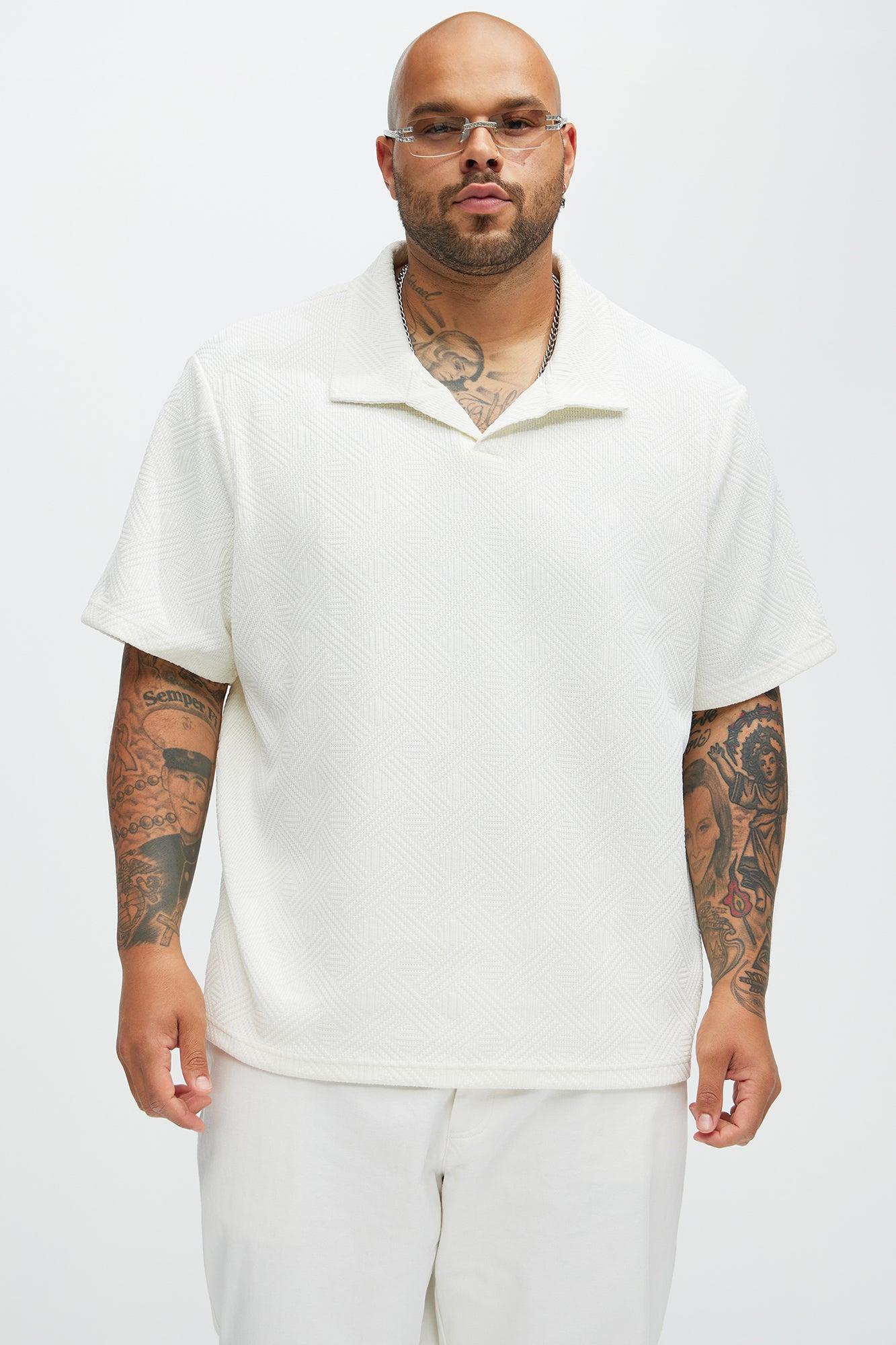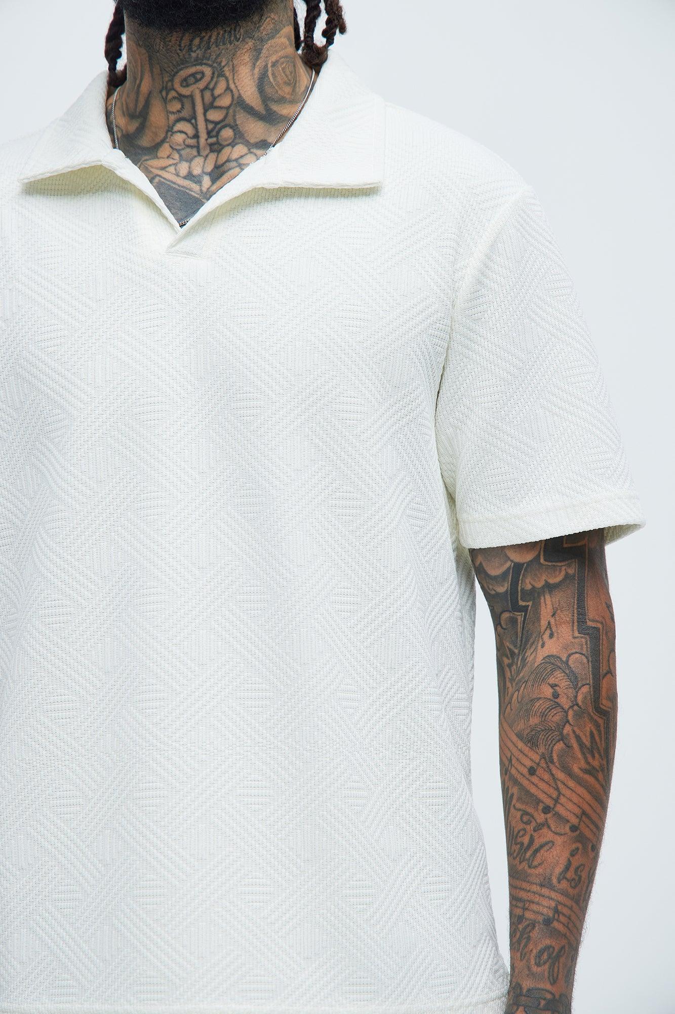 Burley Geo Textured Johnny Collar Shirt - Off White
