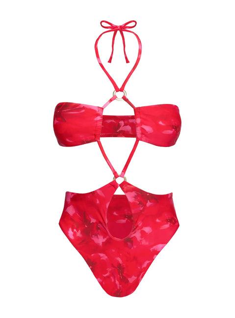 Ruched, cut-out with hoop ring detail, high leg cut, cheeky bottom