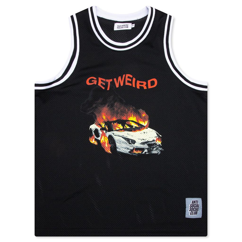 The Anti Social Social Club Burnout Basketball Jersey blends is constructed from 100% polyester performance fabric. This mesh jersey is built for breathability and comfort, making it ideal for both athletic and casual wear. Featuring bold, screen-printed graphics that reflect the brand's signature rebellious spirit, the jersey makes a statement. A woven ASSC label on the bottom front adds a refined touch of branding, while the jersey's lightweight construction ensures an effortless fit. 100% Polyester Open mesh Woven label tag Screen-printed graphics Contrast stripes Style No: ASSCSS25SS11-BLK ASSCSS25SS11