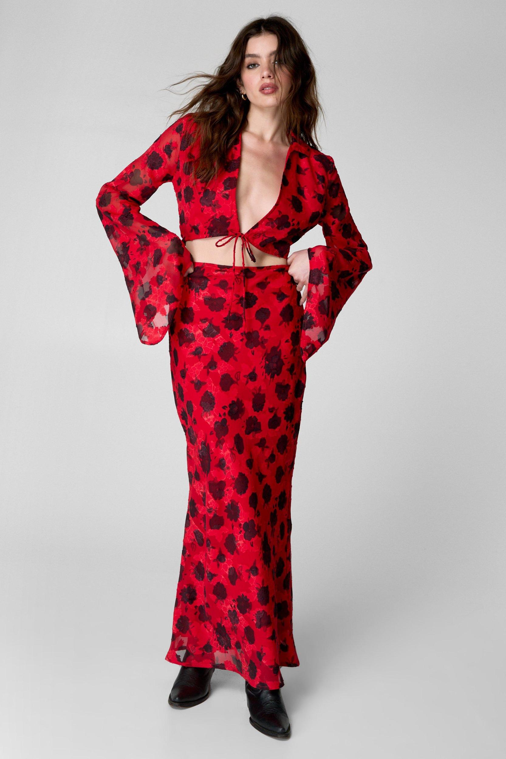 Hey, Cute Top. Feel feminine in this top, made from a high quality burnout material with a floral printed design and a tie front detail. Make a statement and pair woth the matching skirt and your go-to boots for a look perfect for those day drinks with the dolls.