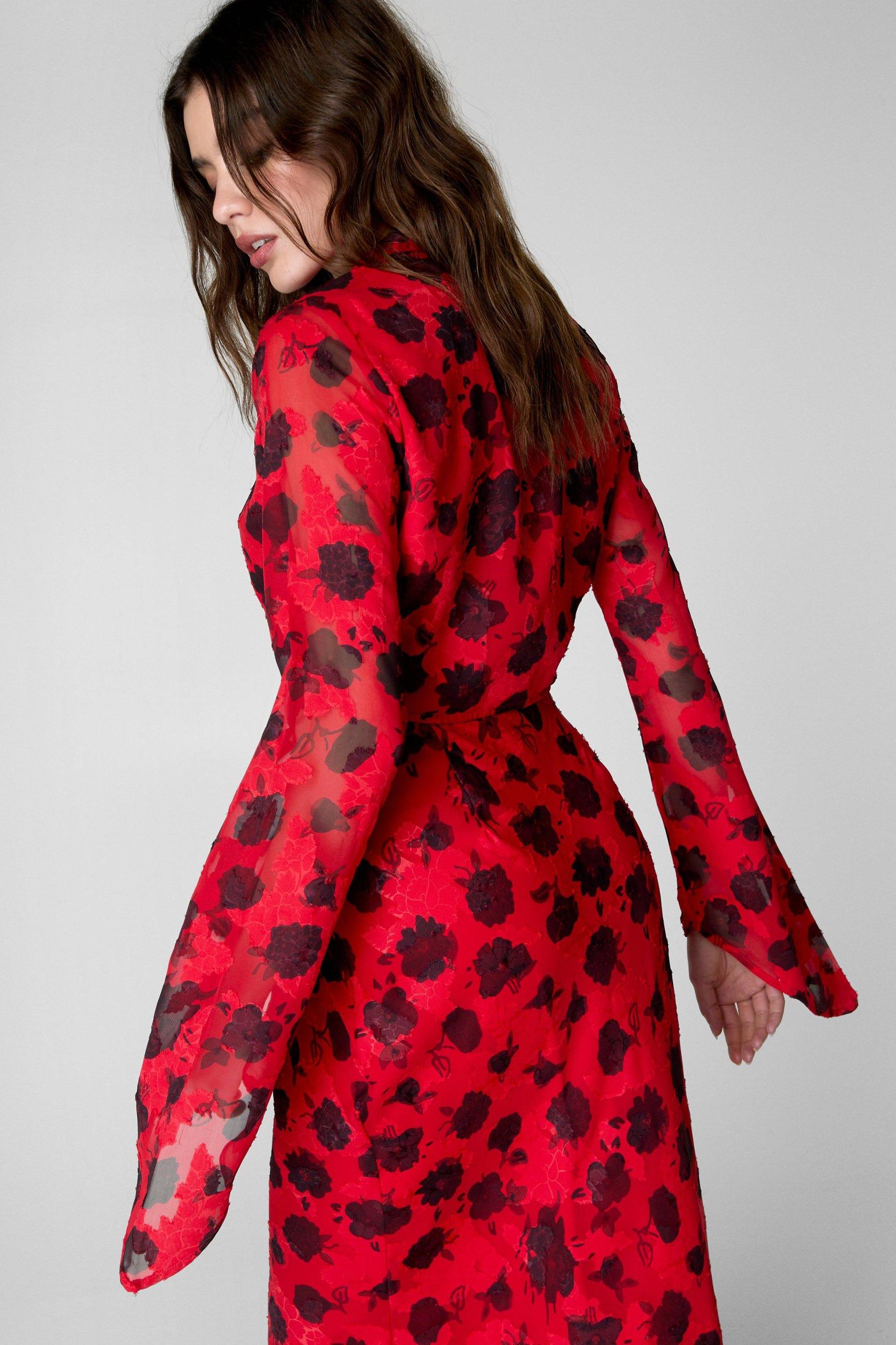 Burnout Floral Printed Tie Front Top