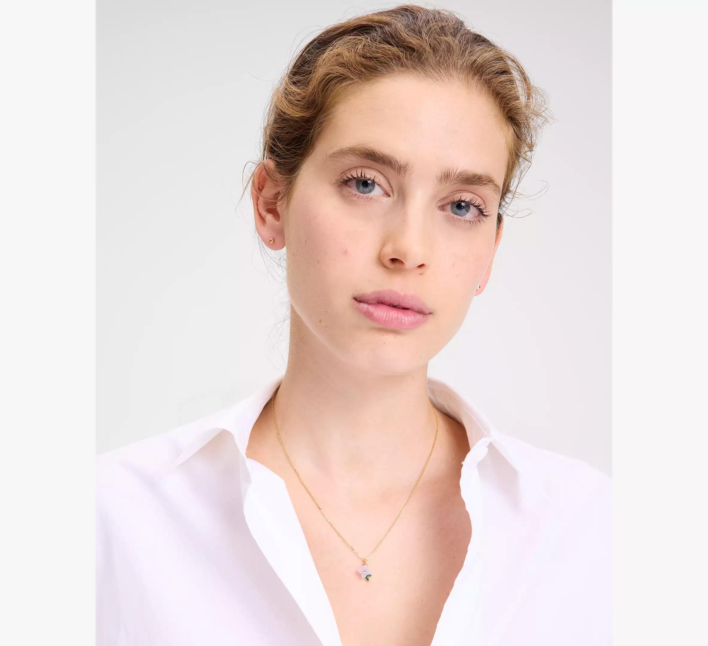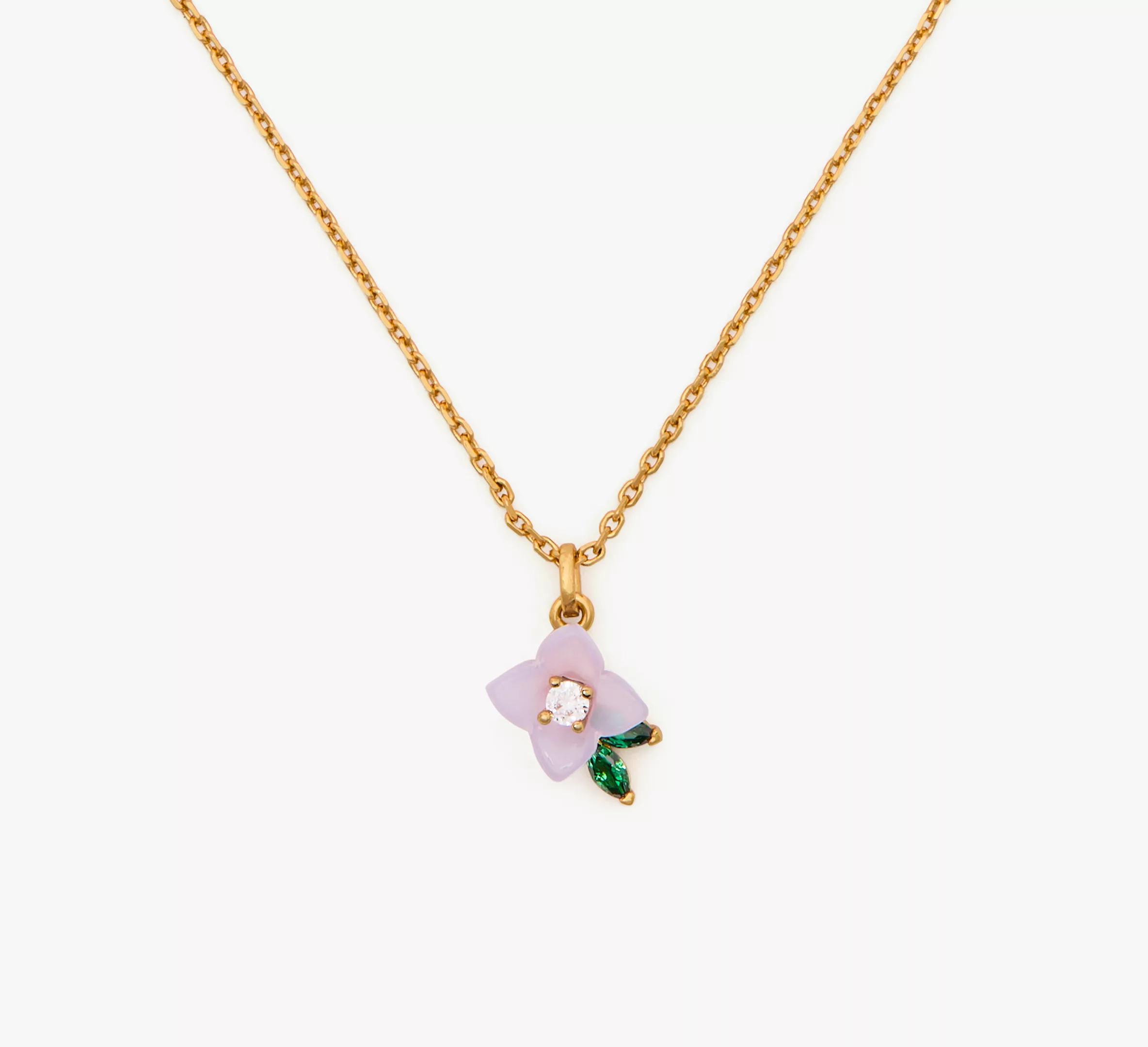 This crystal-embellished pendant adds a flowery pop of sparkle to your look.