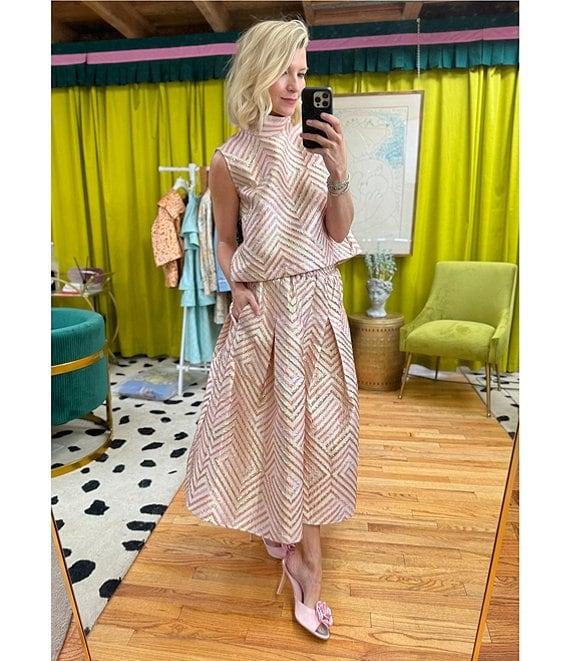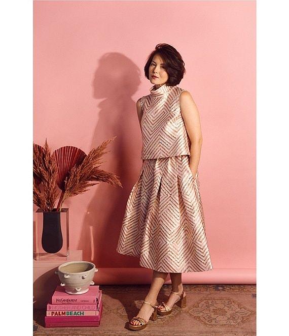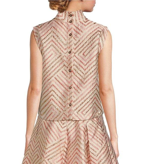 Buru Brocade Cropped Sleeveless Mock Neck Button Back Coordinating Boxy Top