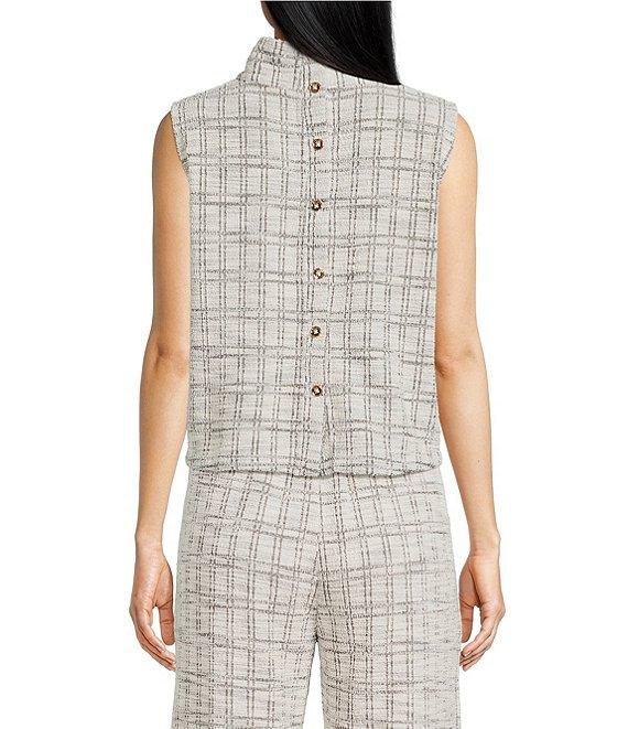 Buru Cropped Sleeveless Mock Neck Button Back Cropped Coordinating Boxy Top