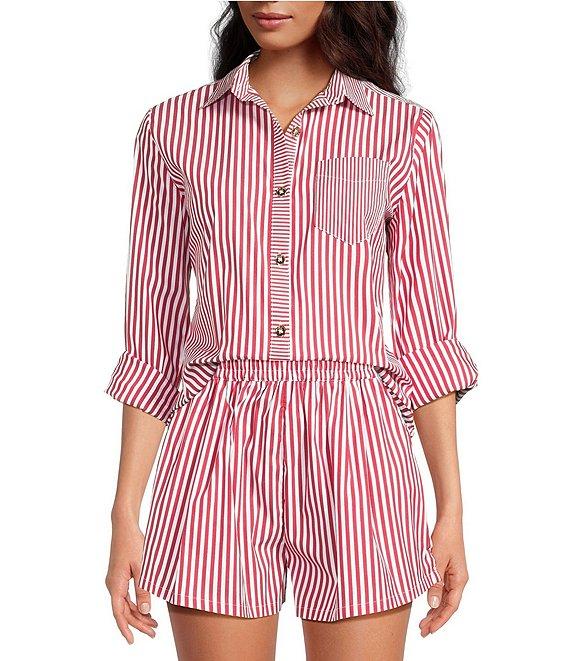 Buru Mel Stripe Print Mixed Button Down Long Sleeve Coordinating Shirt