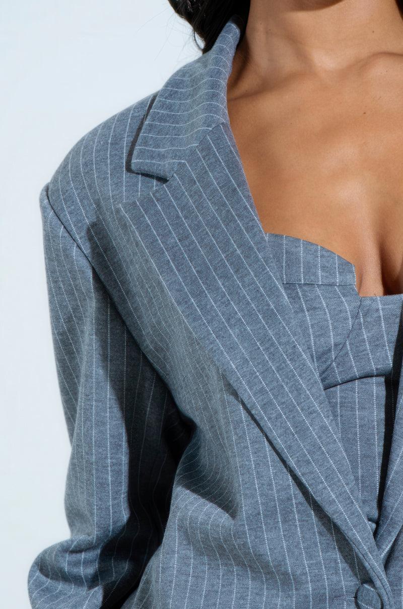 9-5 hustle, 5-9 fun. The AKIRA Label Business Meets Pleasure Oversized Trench is crafted from a cozy, wool-inspired base and features a classic neutral pinstripe pattern throughout, a notch lapel collar, slightly padded shoulders for natural shaping, long sleeves, mock waist pockets, a back vent slit, and a tonal satin inner lining. Complete with coordinating button down front closures, and an oversized, longline silhouette. Pair it with the matching AKIRA Label Business Meets Pleasure Mini Dress and stiletto pumps for a polished finish. - 80% Polyester 20% Cotton- Hand Wash or Dry Clean- Slight Stretch- Imported (all measurements approximate from size small)- 53” Shoulder to Hem- 18” Shoulder to Shoulder- 24” Sleeves- Model is 5’8” and is wearing size smallProduct ID: 464870 (all measurements approximate from size 1X)- 56” Shoulder to Hem- 20” Shoulder to Shoulder- 25” SleevesProduct ID: 464874
