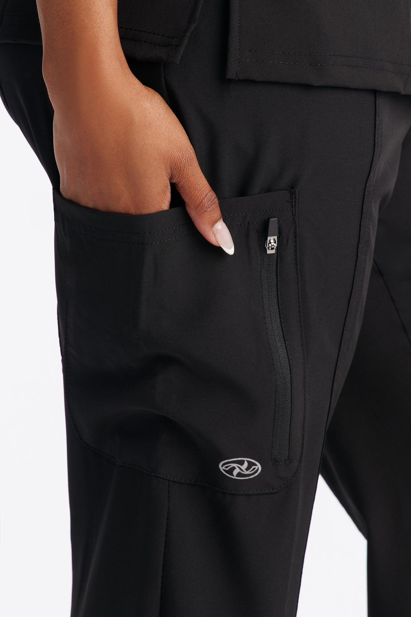 Busy Shift Zipper Cargo Pocket Scrub Bottoms - Black Female