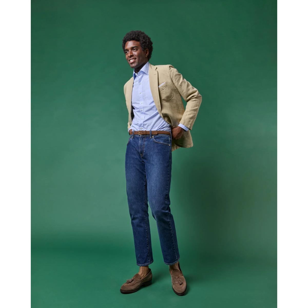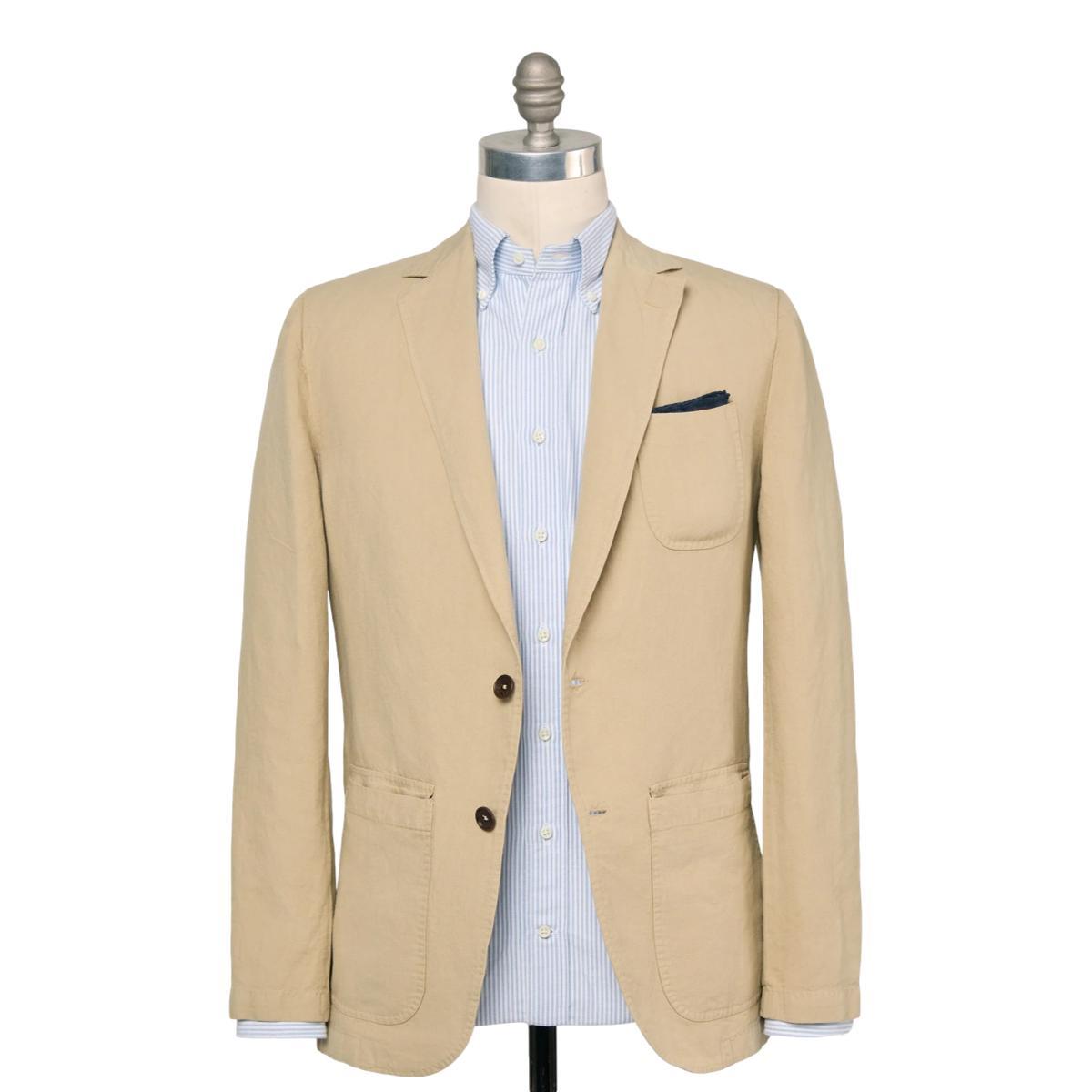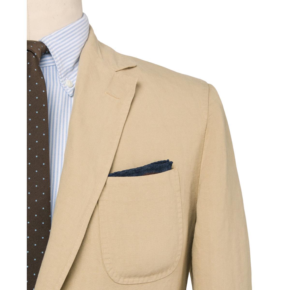 Somewhere between a chore coat and a blazer, the Butcher might be the easiest jacket Sid makes. This one's made from a half-and-half blend of cotton and canapa, which is a rare hemp yarn with the same kind of textured crunchiness as linen and flax. It's spun in Italy in small quantities and gets better the more you wear it, so it's especially great blended with cotton in a canvas weave. It's unlined and unstructured, with a natural shoulder and pickstitched spalla camicia shirtsleeve construction. The pockets on the front are special, too: they designed them so that you can tuck in the flaps (without looking like you just tucked in the flaps) for a more open look. There are even reinforced elbow patches to really drive the “casual” thing home. The fit of the Butcher is easy, with a touch more room in the body than their tailored jackets. Italian canapa canvas 51% canapa/49% cotton brown corozo buttons unlined and clean-finished with buggy pickstitched spalla camicia shirtsleeve construction natural shoulder 2-button, undarted front elbow patches two hybrid patch-flap pockets with patch pocket at chest one interior chest pocket nonvented, finished sleeve side vents made in Portugal dry clean only alterations available in store