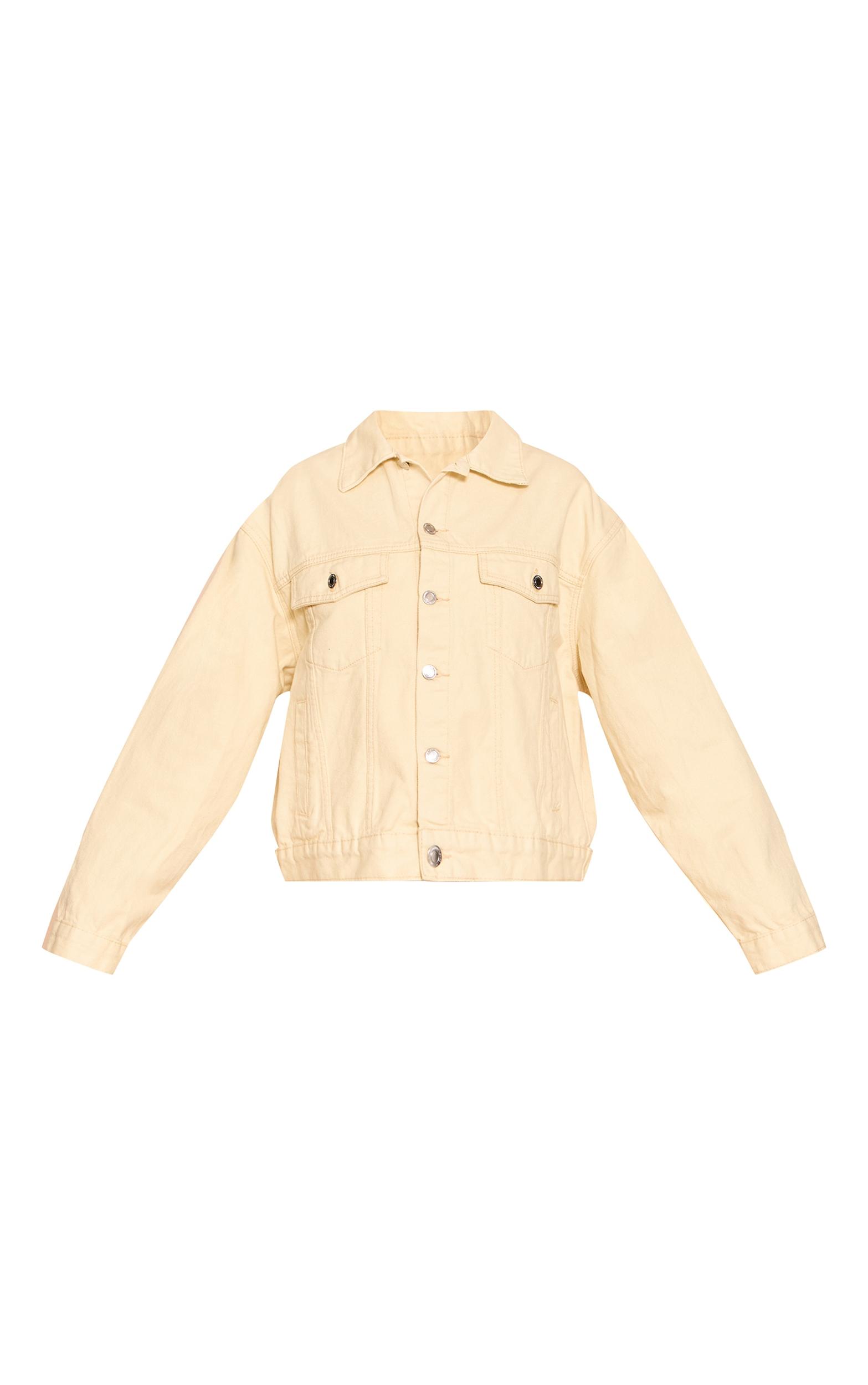 Feel confident in this butter cream oversized classic denim jacket. Made from butter cream hue denim, this jacket has button fastenings, a collared neckline and long sleeves. Team it with complementing jeans and a baby tee, then add flats or strappy heels to complete the look.Length approx 48.5cm/19inch (Based on sample size US 4)Model wears size UK 8/ EU 36/ AUS 8/ US 4Model Height - 5ft 7inchp]:!mb-4inch>Brand: PrettyLittleThingCategory: DenimProduct type: Oversized denim jacketColor: Butter CreamMaterial: Rigid DenimSleeves: LongOccasion: Day