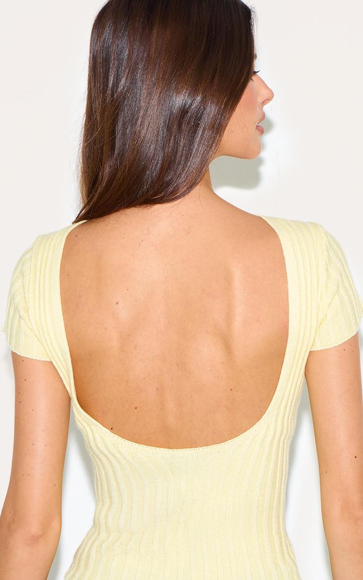 Made from butter cream knit material with a rib detail and a flattering backless design. Achieve the perfect look with the butter cream rib knit backless top by pairing it with wide leg blue jeans, an elegant bag and ballet flats for an effortlessly chic outfit.Length approx 48.5cm/19inch (Based on sample size S)Model wears size SModel Height - 5ft 7inchp]:!mb-4inch>Brand: PrettyLittleThingCategory: KnitwearProduct type: Vest TopColor: Butter Cream..Material: Rib KnitDesign: PlainSleeves: ShortOccasion: Day