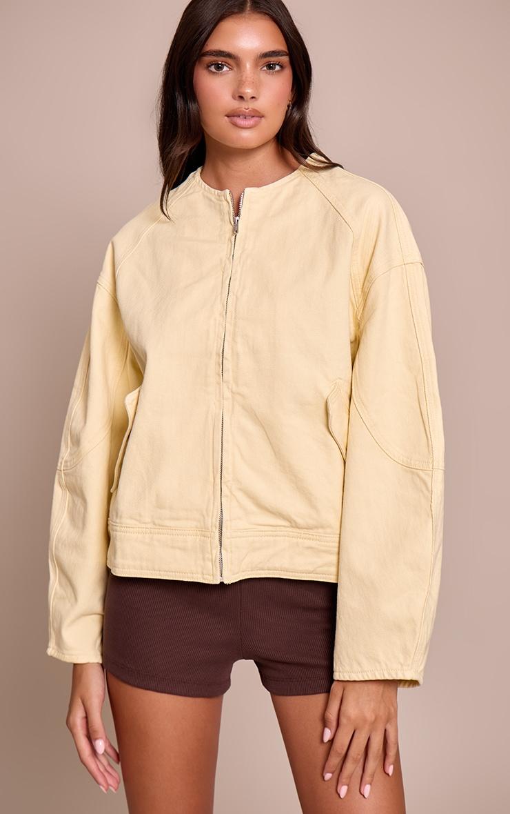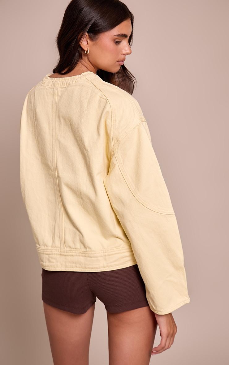 Keep it chic in this butter cream round neck balloon sleeve denim jacket. Made from butter cream hue denim, this jacket has button fastenings, a round neckline and fashion-forward balloon sleeves. Wear it with complementing jeans or a mini skirt and slip on kitten heels.Length approx 48.5cm/19inch (Based on sample size US 4)Model wears size UK 8/ EU 36/ AUS 8/ US 4Model Height - 5ft 7inchp]:!mb-4inch>Brand: PrettyLittleThingCategory: DenimProduct type: Denim JacketColor: Butter CreamMaterial: Rigid DenimDesign: PlainSleeves: LongOccasion: Day