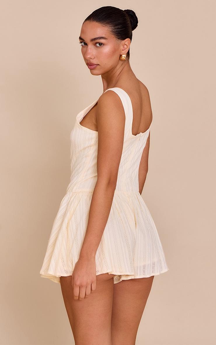 Opt for a sweet silhouette in this butter yellow button down cotton drop waist skort romper. Featuring pale yellow striped material, this romper has thick straps, a chic dropped waist and button fastenings. Level up your look by styling it with understated kitten heels and oversized gold stud fastening earrings.Length approx 81.5cm/32inch (Based on sample size US 4)Model wears size UK 8/ EU 36/ AUS 8/ US 4Model Height - 5ft 7inchp]:!mb-4inch>Brand: PrettyLittleThingCategory: Jumpsuits & PlaysuitsProduct type: Skort PlaysuitColor: Butter YellowMaterial: Tailored WovenDesign: PlainNeckline: SquareSleeves: SleevelessOccasion: Day