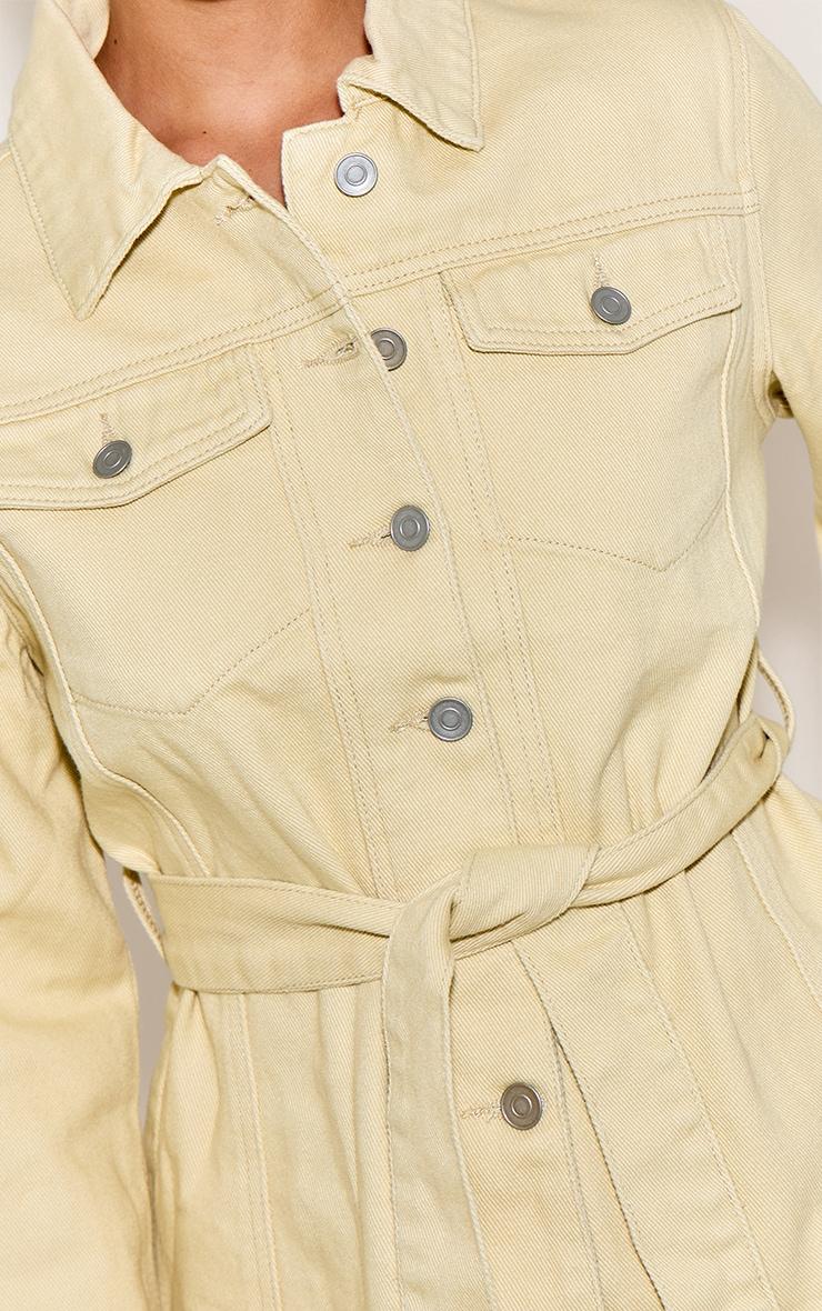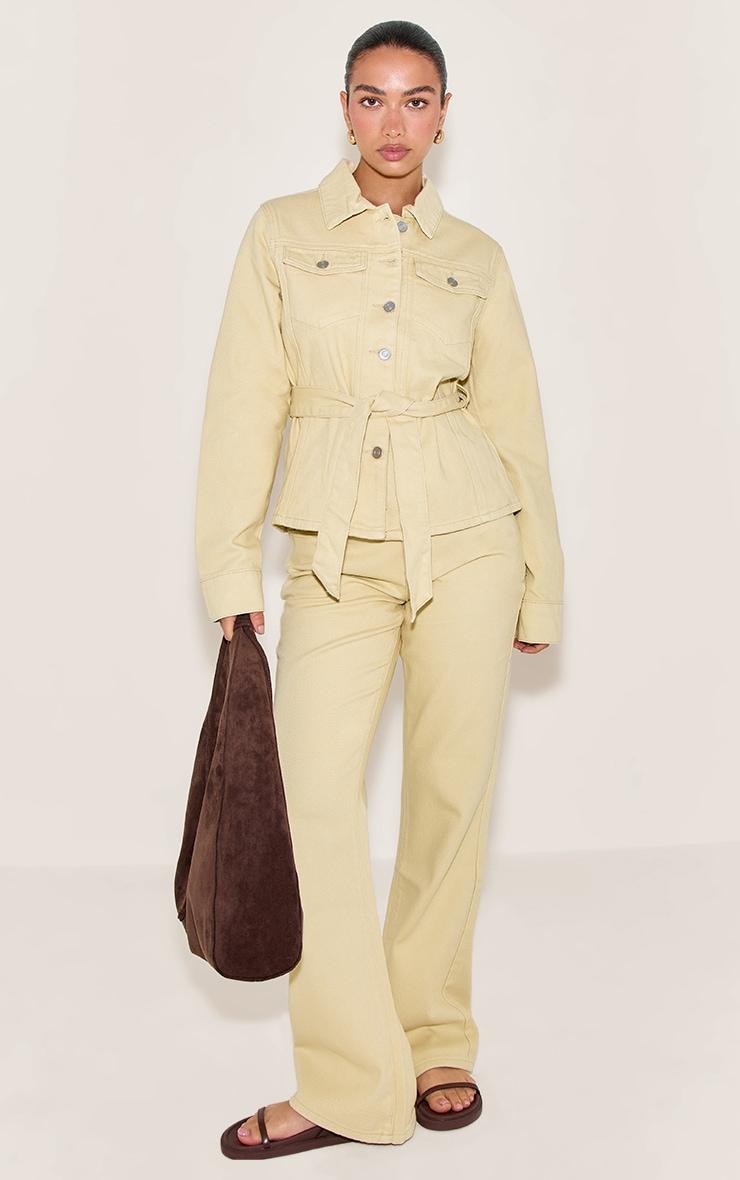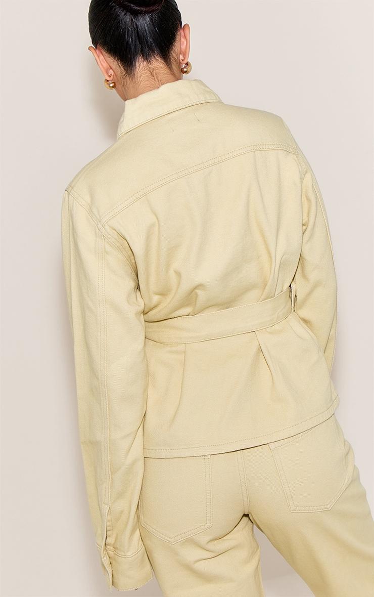 Introducing this butter cream contrast stitch cinched waist belted denim jacket. Crafted from soft cream denim, this jacket has contrast stitching, button fastenings and a classic denim jacket style. Team it with a basic cami, the matching jeans and a slouchy bag for a double denim moment.Length approx 48.5cm/19inch (Based on sample size US 4)Model wears size UK 8/ EU 36/ AUS 8/ US 4Model Height - 5ft 7inchp]:!mb-4inch>Brand: PrettyLittleThingCategory: DenimProduct type: Denim JacketColor: Butter YellowMaterial: Rigid DenimOccasion: Day