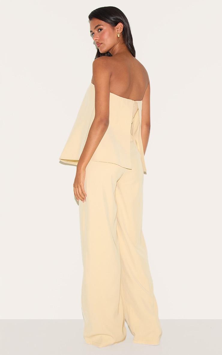 Opt for a timeless look in this butter yellow structured woven peplum straight leg jumpsuit. With a floaty bandeau upper, this jumpsuit has a chic straight leg fit. Add it to sleek kitten heels, chunky bangles and a slouchy clutch for a versatile look. Length approx 145cm/57inch (Based on sample size US 4)Model wears size UK 8/ EU 36/ AUS 8/ US 4Model Height - 5ft 7inchp]:!mb-4inch>Brand: PrettyLittleThingCategory: Jumpsuits & PlaysuitsProduct type: Tailored JumpsuitColor: Butter YellowMaterial: Tailored WovenDesign: PlainNeckline: BandeauSleeves: SleevelessOccasion: Evening
