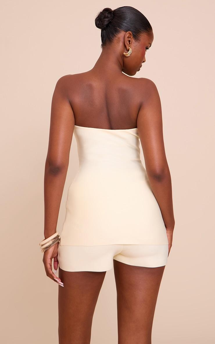 The butter yellow tailored bandage bandeau top is a soft, structured staple with a sleek bandeau cut that hugs the body in all the right places. Its bright hue adds a playful edge to the classic tailoring. Wear it with the matching mid rise shorts and strappy sandals for a sun-drenched daytime ensemble.Length approx 34.5cm/13.5inch (Based on sample size US 4)Model wears size UK 8/ EU 36/ AUS 8/ US 4Model Height - 5ft 9inchp]:!mb-4inch>Brand: PrettyLittleThingCategory: Co-ordsProduct type: Bandeau TopColor: Butter YellowMaterial: Tailored WovenDesign: PlainOccasion: Evening