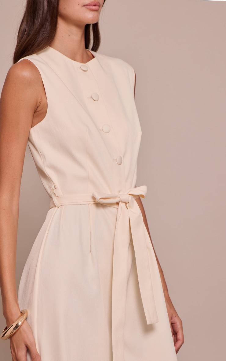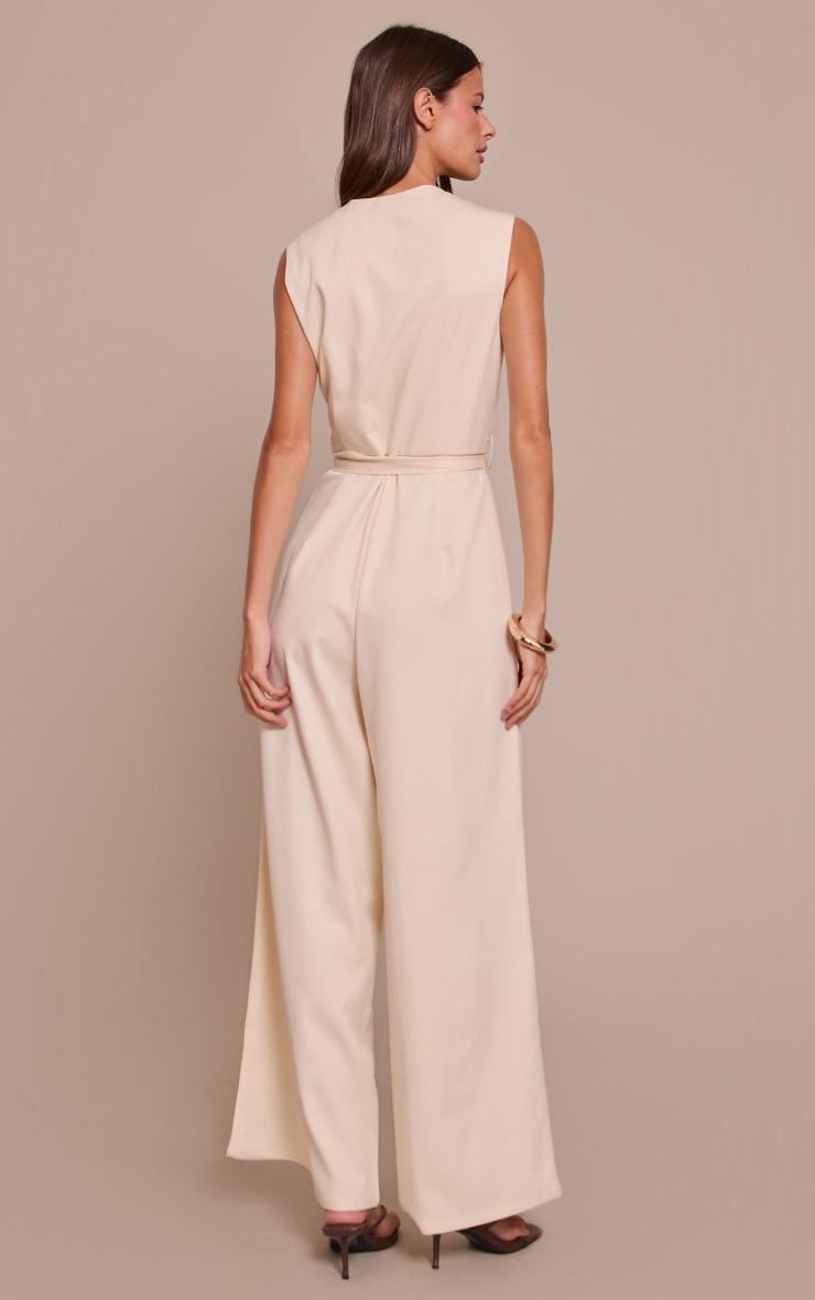 he buttercream woven button tie belt wide leg jumpsuit blends polish with ease. Crafted from woven fabric, it features button detailing along the bodice and a coordinating tie belt that draws in the waist. The wide leg silhouette elongates the frame while keeping movement effortless, and the buttercream hue brings a soft yet sophisticated finish. Pair with nude sandals and a straw tote for daytime chic, or elevate with barely-there heels and layered jewelry for evening elegance.Length approx 155cm/61inch (Based on sample size US 4)Model wears size UK 8/ EU 36/ AUS 8/ US 4Model Height - 5ft 7inchp]:!mb-4inch>Category: DressesProduct type: Wide Leg JumpsuitColor: Butter Cream..Material: Tailored WovenOccasion: Evening