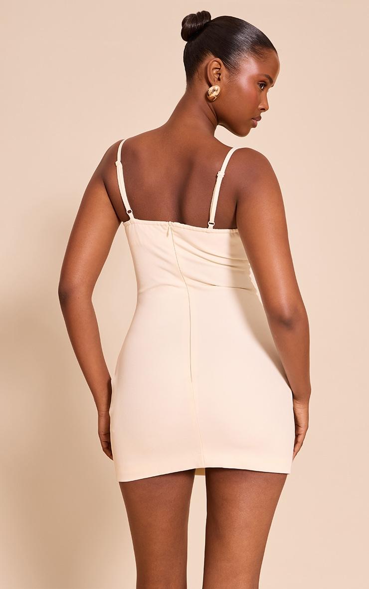 Modern elegance meets confident ease in the buttercream woven high neck mini shift dress. This design perfects a sleek mini-length shift silhouette, showcasing a distinctive high neckline and subtle body draping that creates a unique layered detail at the hem. For an assured evening, style yours with sharp strappy heels and understated gold earrings, completing a look that’s entirely your own.Length approx 81.5cm/32inch (Based on sample size US 4)Model wears size UK 8/ EU 36/ AUS 8/ US 4Model Height - 5ft 9inchp]:!mb-4inch>Category: DressesProduct type: Shift DressColor: CreamMaterial: Tailored WovenOccasion: Evening