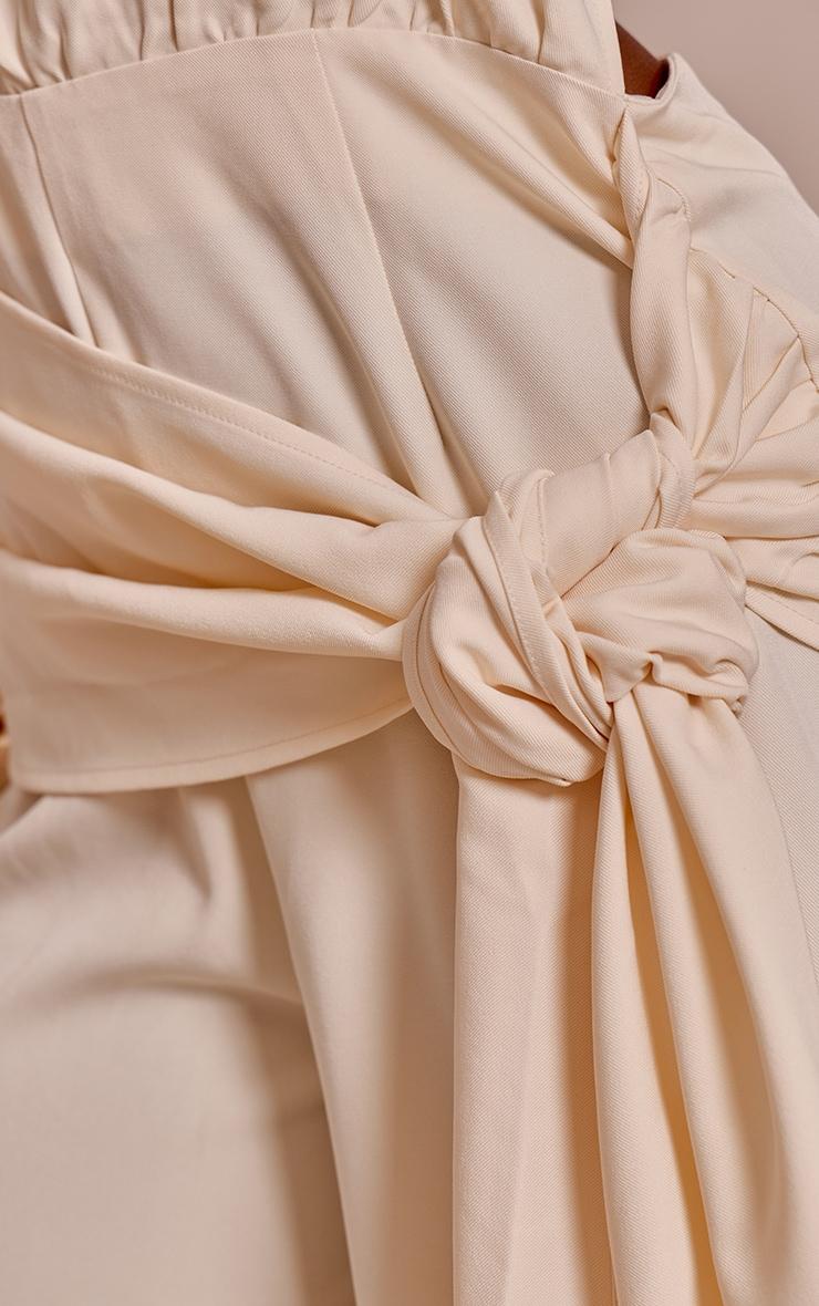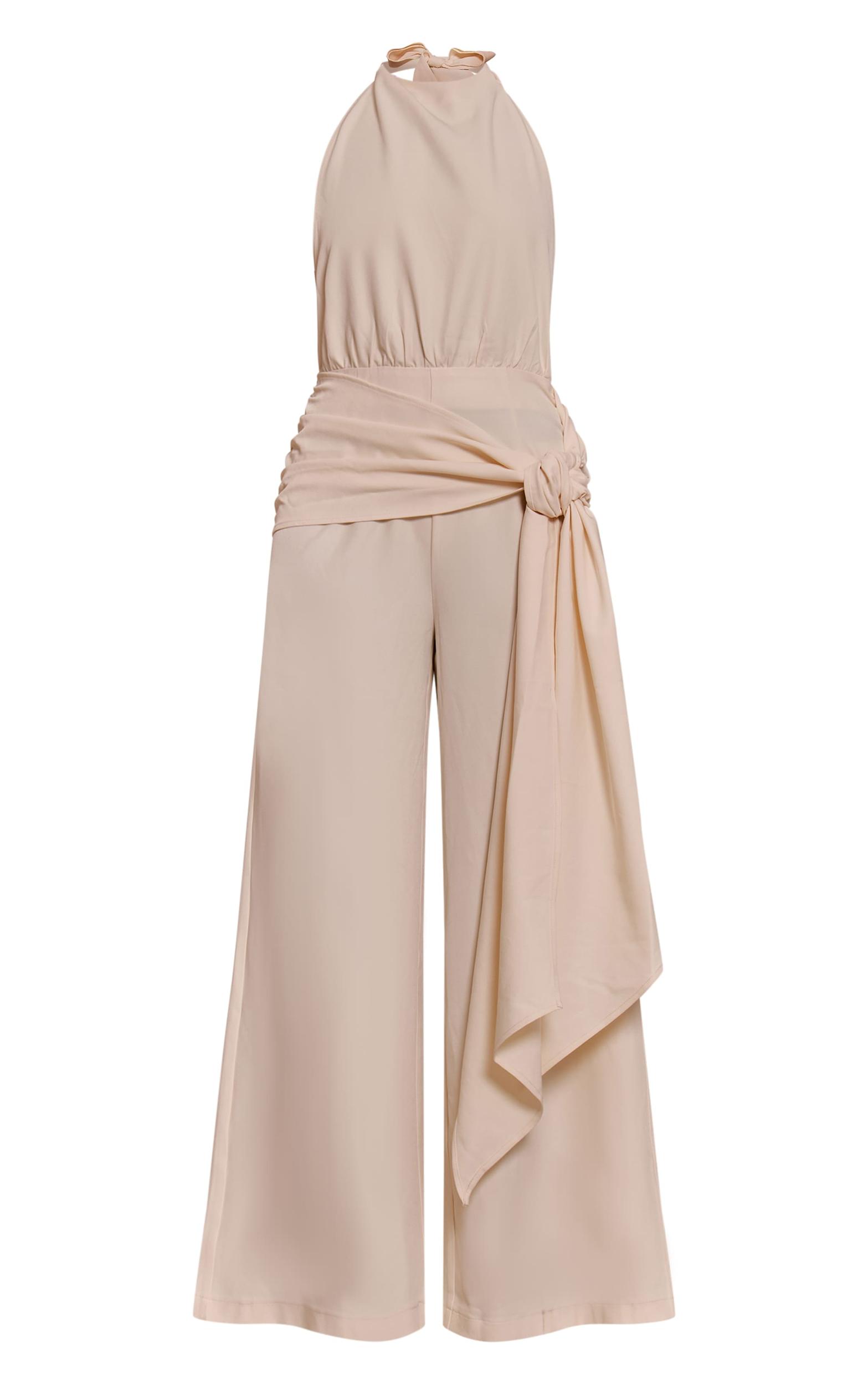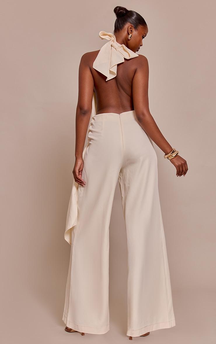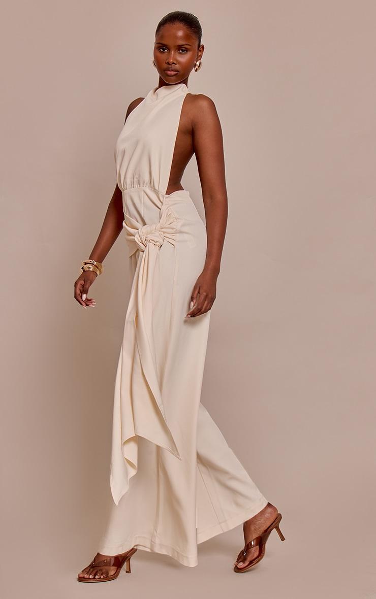Make a confident statement with a look that commands attention. The buttercream woven halterneck wrap detail wide leg jumpsuit combines a sophisticated halter neckline with a relaxed wide-leg silhouette, perfect for any evening occasion. Its distinctive wrap detail artfully cinches the waist, flowing elegantly down the side to create an undeniable focal point. Complete this impactful ensemble with sharp pointed heels and a sleek mini bag for a polished finish that owns the room.Length approx 155cm/61inch (Based on sample size US 4)Model wears size UK 8/ EU 36/ AUS 8/ US 4Model Height - 5ft 9inchp]:!mb-4inch>Category: DressesProduct type: Wide Leg JumpsuitColor: Butter Cream..Material: Woven JacquardOccasion: Evening