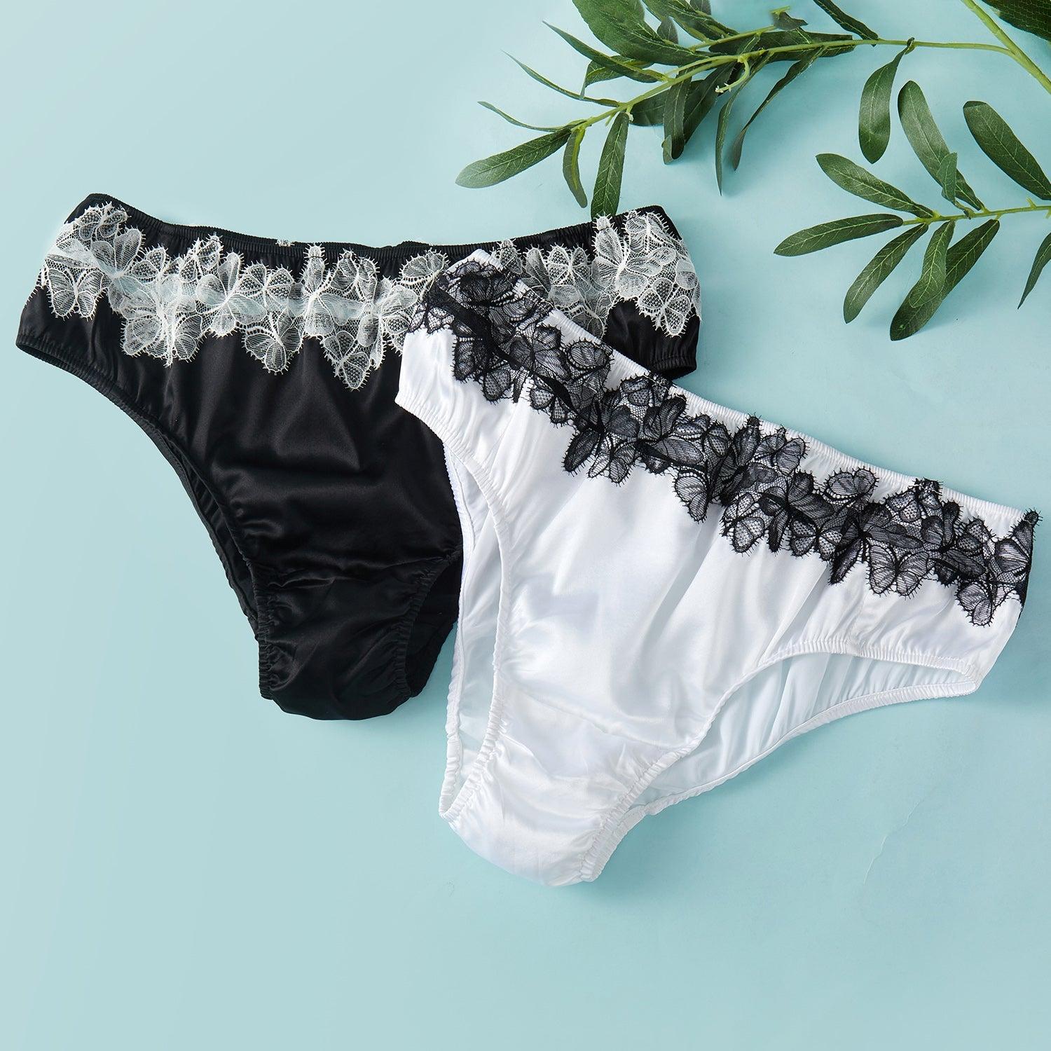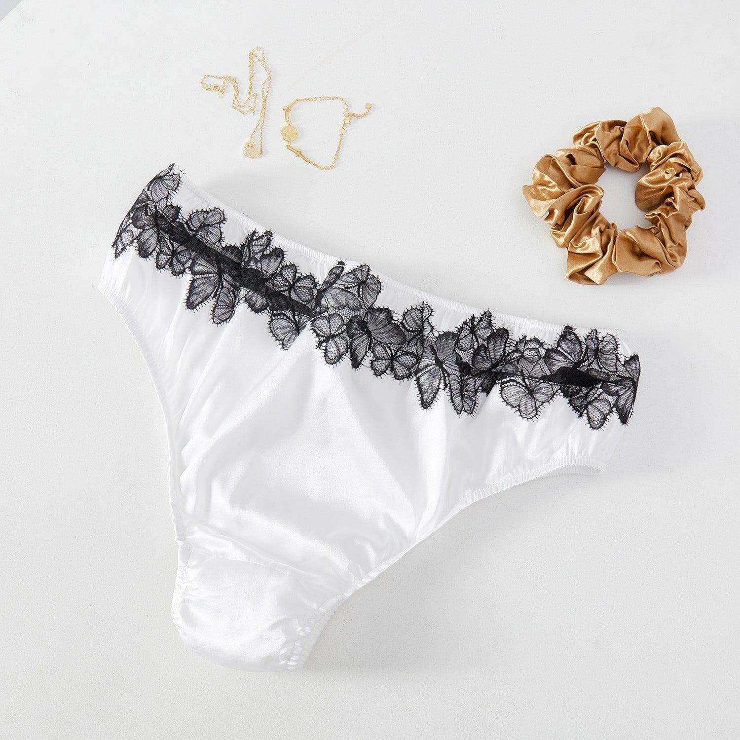 We found this French butterfly lace and it's too cute not to be added to our silk panties! Petal soft, these silk panties feel like a second skin, keeping you fresh, comfy, and non-irritated. Breathable gusset liner in 100% mulberry silk is anti-odor, moisture-wicking and quick drying. Wrapped in silk, the elastics lay flat when stretched and won’t dig in. The waistband sits at your hip bone or slightly below. A classic mid-waist bikini style.