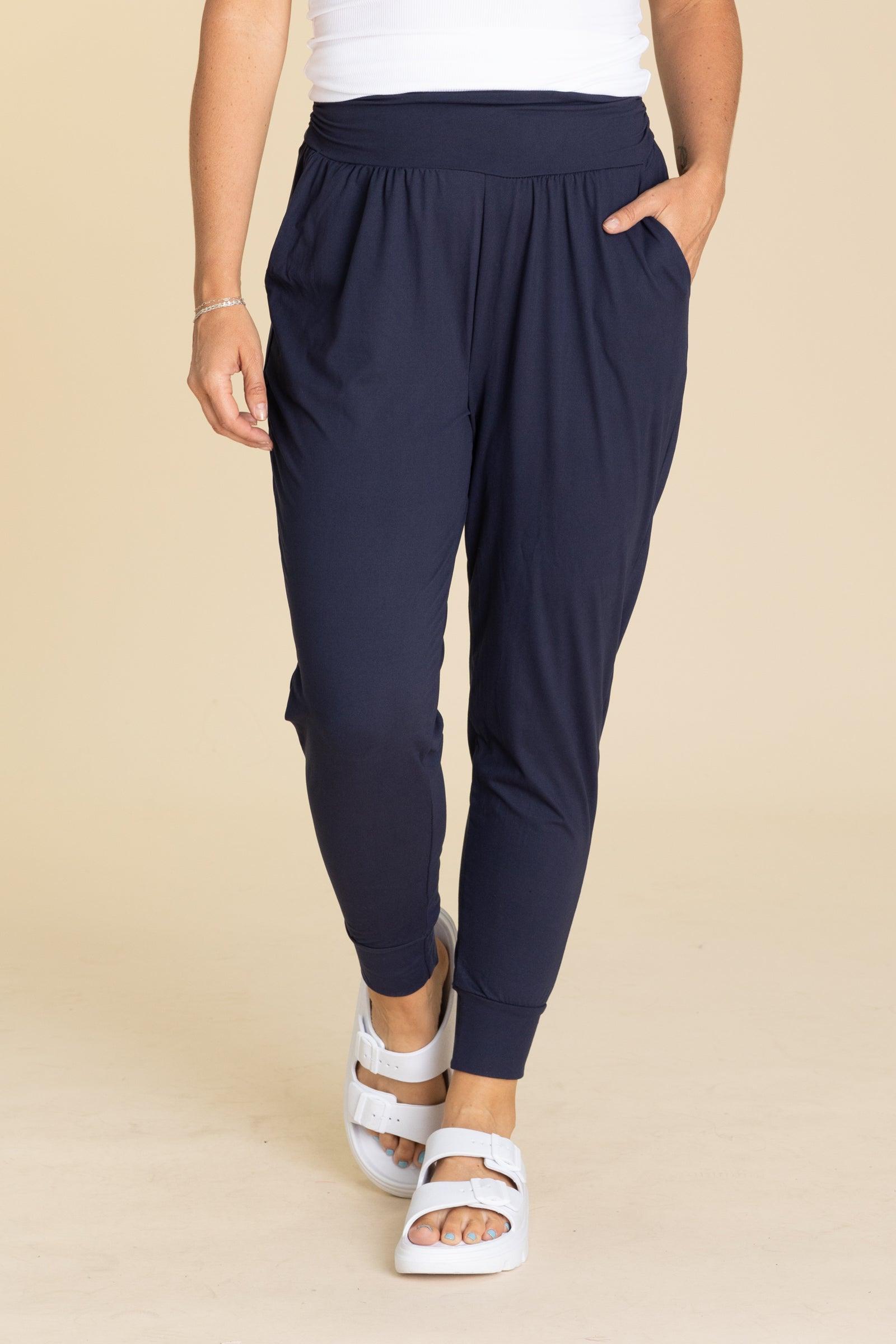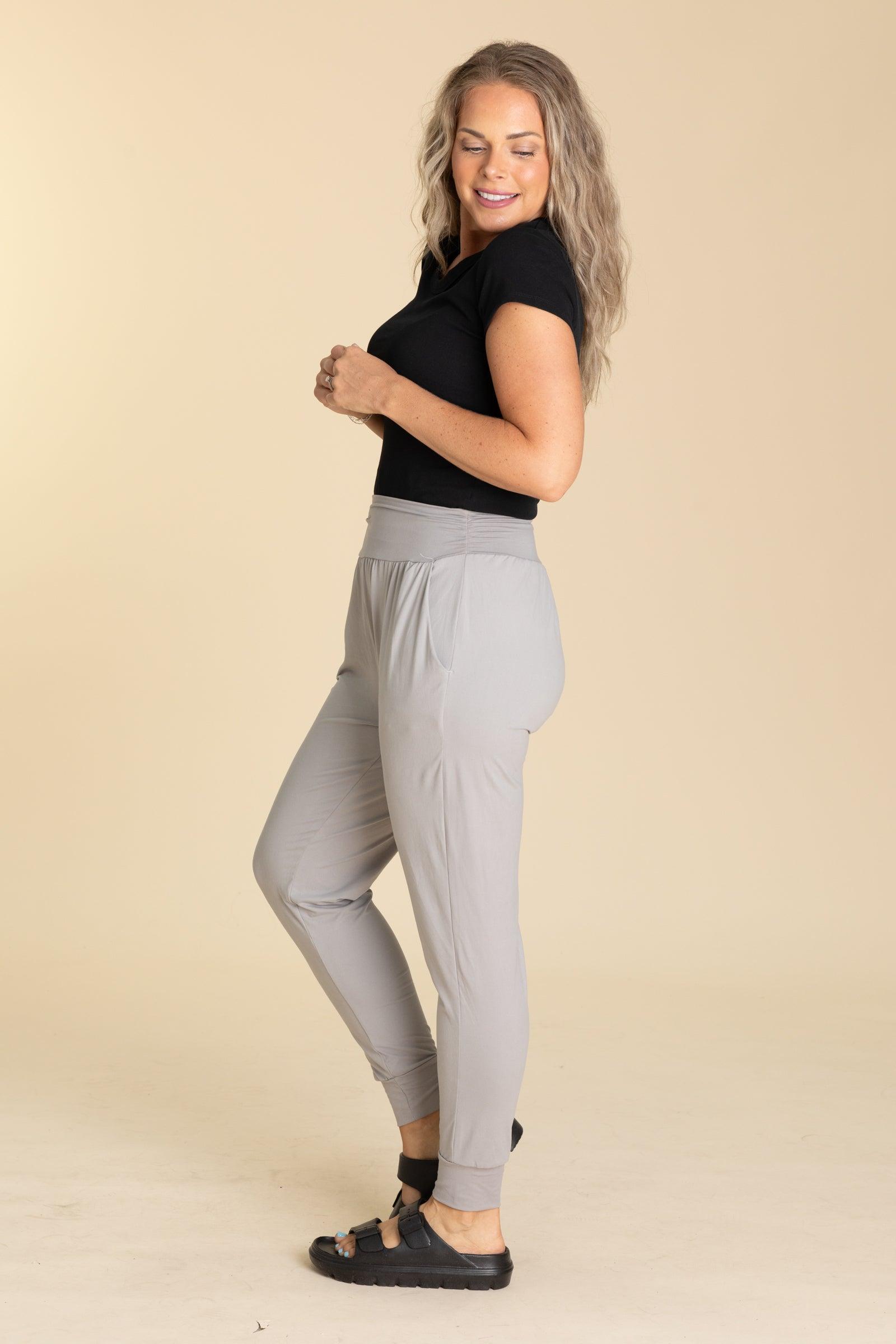 Product Details Color/Wash: Light Grey/ Navy/ Olive Rise: High Rise Style: Joggers With Elastic Drawstring Waistband Brand: Leggings Depot Material and Care 92% Polyester 8% Spandex Hand Wash Cold Hang/Line Dry Size and Fit Small: Waist 22" Rise 13" Inseam 26.5" Medium: Waist 24" Rise 13.5" Inseam 27" Large: Waist 26" Rise 14" Inseam 27" X Large: Waist 28" Rise 14.5" Inseam 27" 1X Large: Waist 32" Rise 15" Inseam 27" 2X Large: Waist 34" Rise 15.5" Inseam 27.5" 3X Large: Waist 36" Rise 16" Inseam 28" Erica is 5’7” and wearing her true size medium