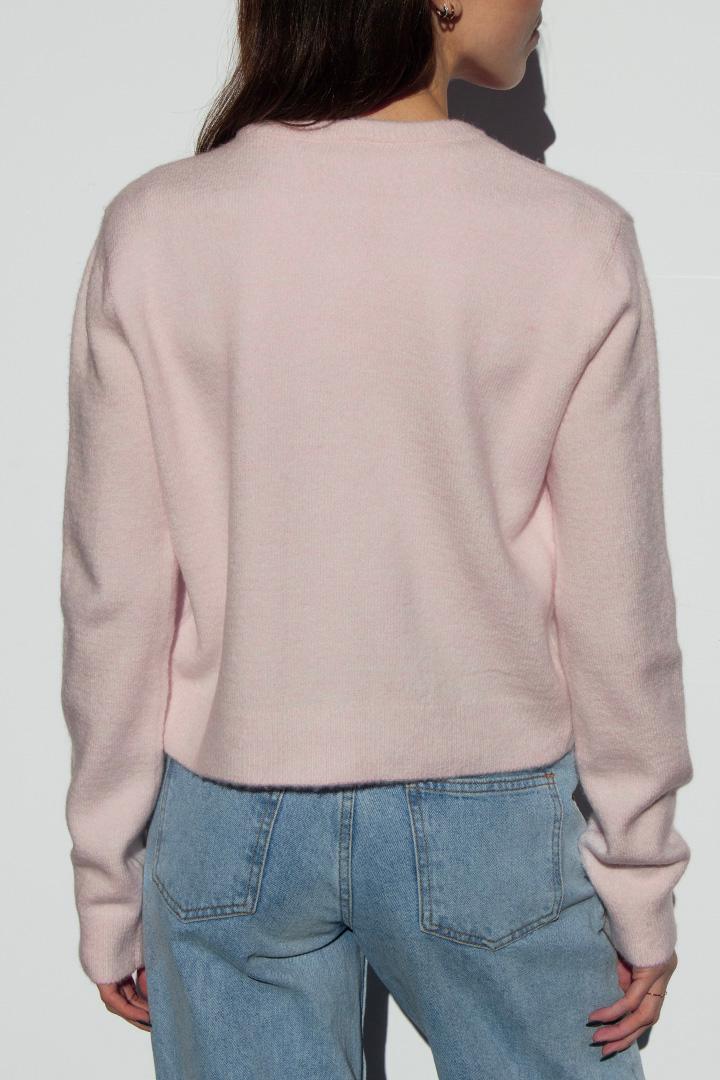 Button down cardigan, crew neckline, long sleeves, short length, relaxed fit.
