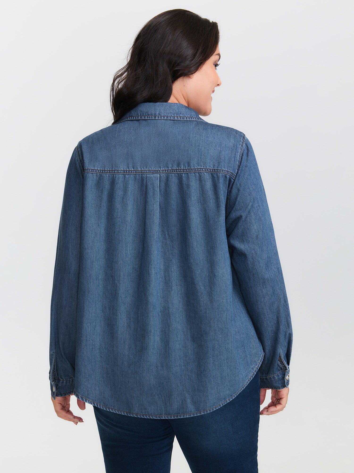 Button-Down Curvy Hem Denim Top Female