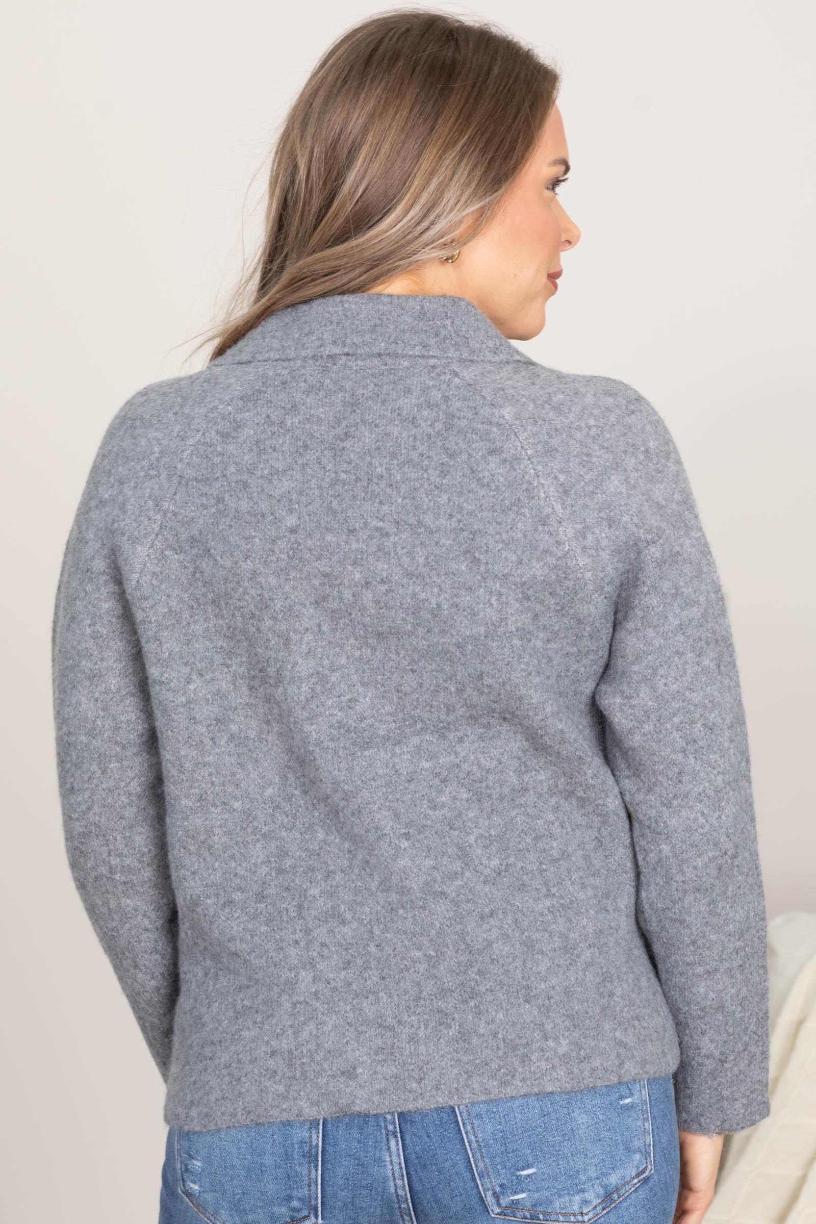 Product Details Colors: Heathered Charcoal/ Heathered Tan Print: Heathered Neckline: Button Down Sleeve: Long Sleeve Hemline: Straight Brand: Staccato Material and Care 45% Acrylic 37% Polyester 15% Nylon 3% Spandex Hand Wash Cold Hang/ Line Dry Size and Fit Small: Bust 38" Waist 38" Length 23.5" Medium: Bust 40" Waist 40" Length 24" Large: Bust 42" Waist "42 Length 24.5" X Large: Bust 44" Waist 44" Length 25" Erica is 5’7” and wearing her true size small