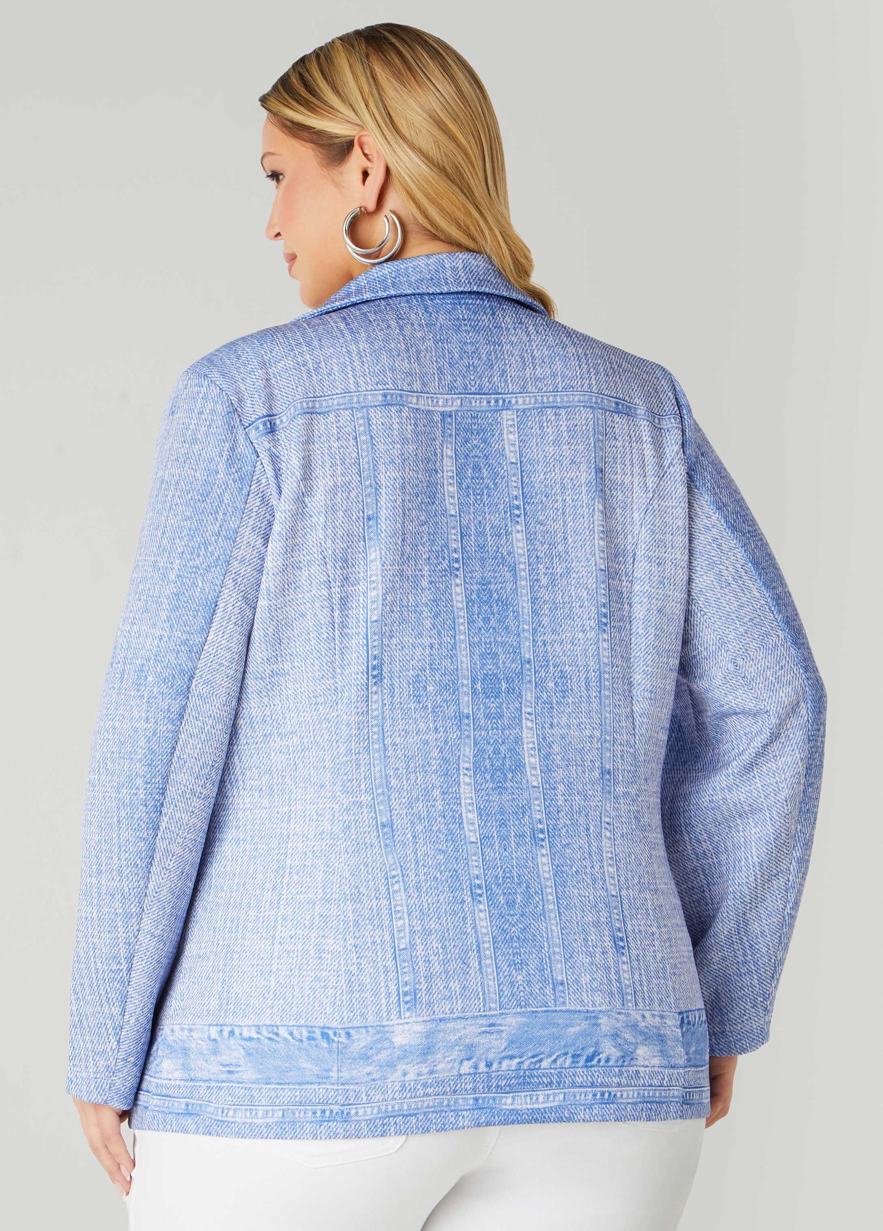 Button Front Denim Print Blazer