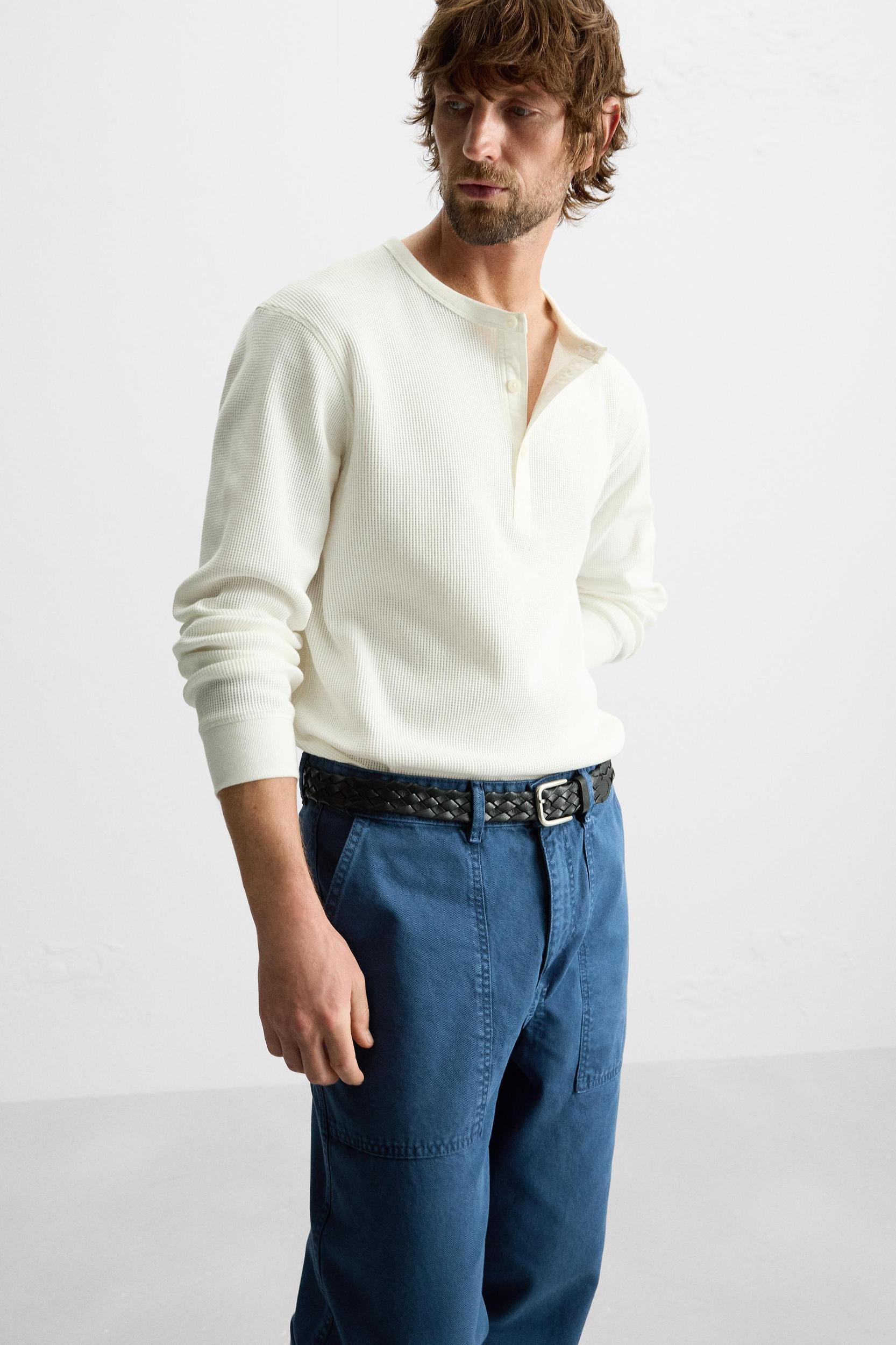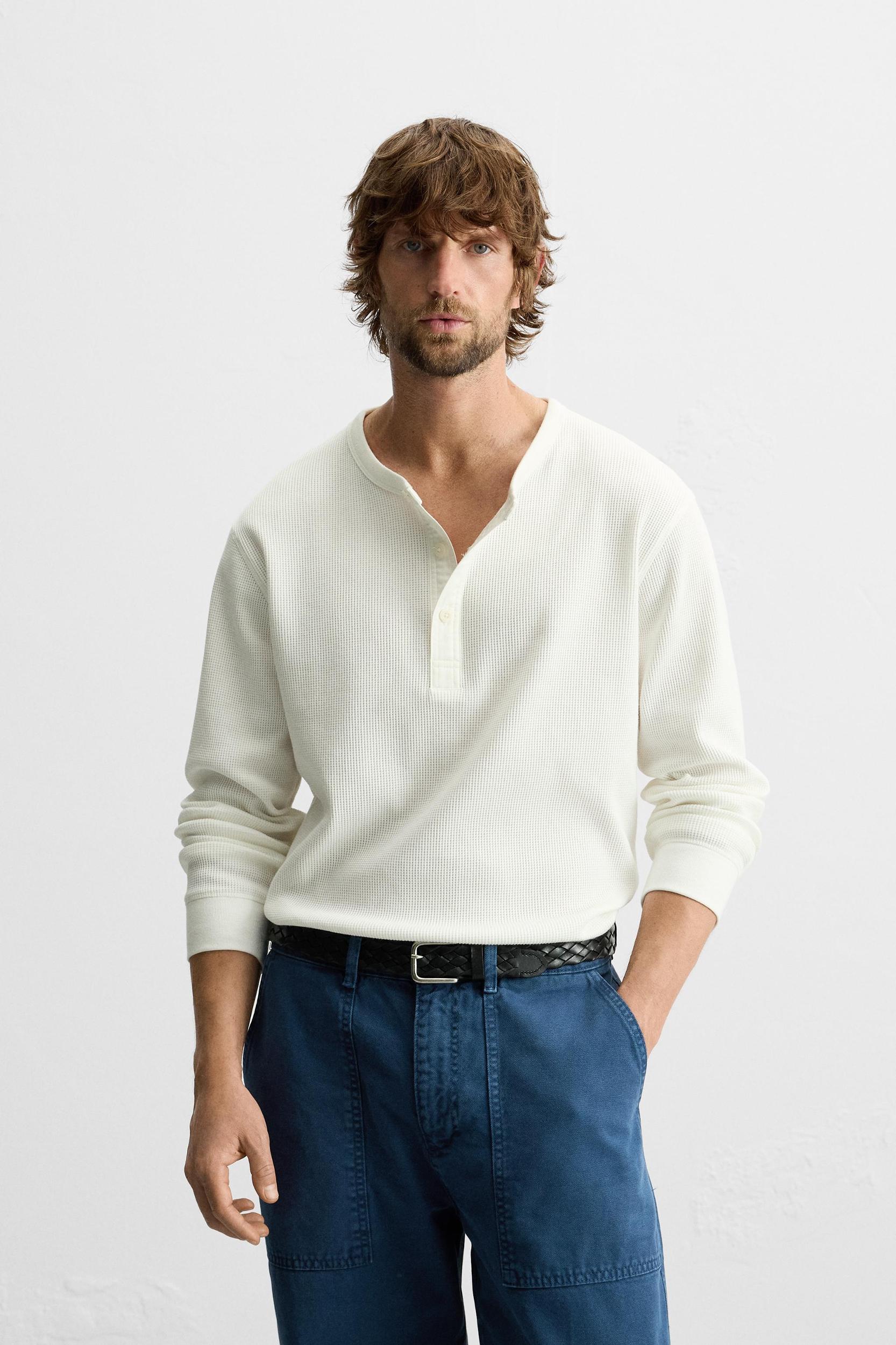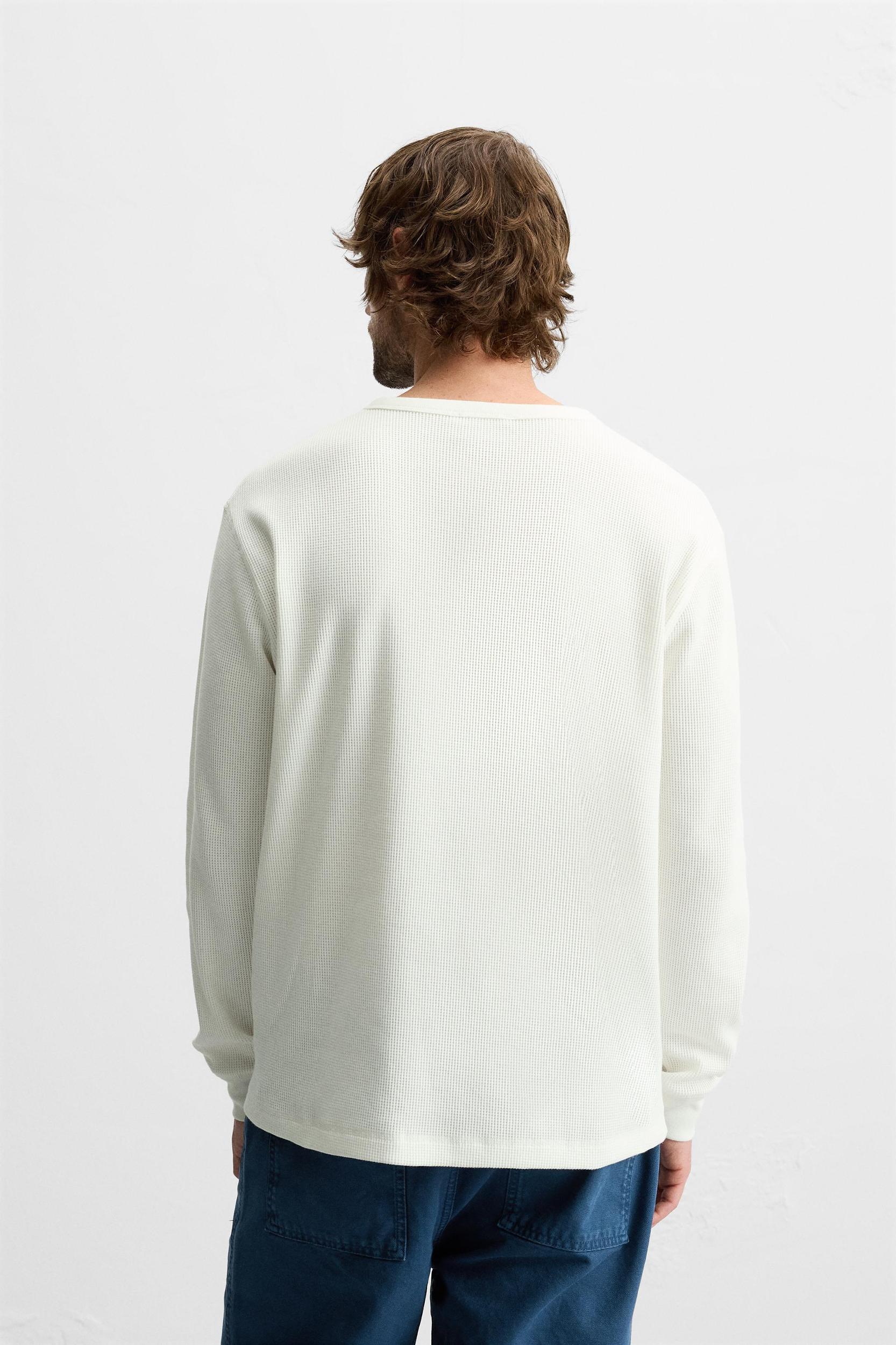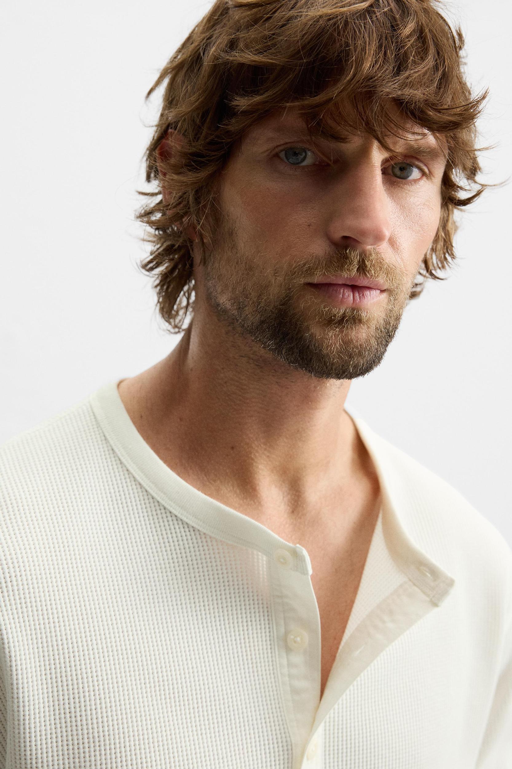 BUTTON-NECK CHECKERED T-SHIRT