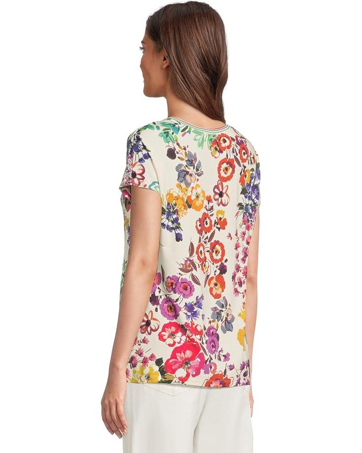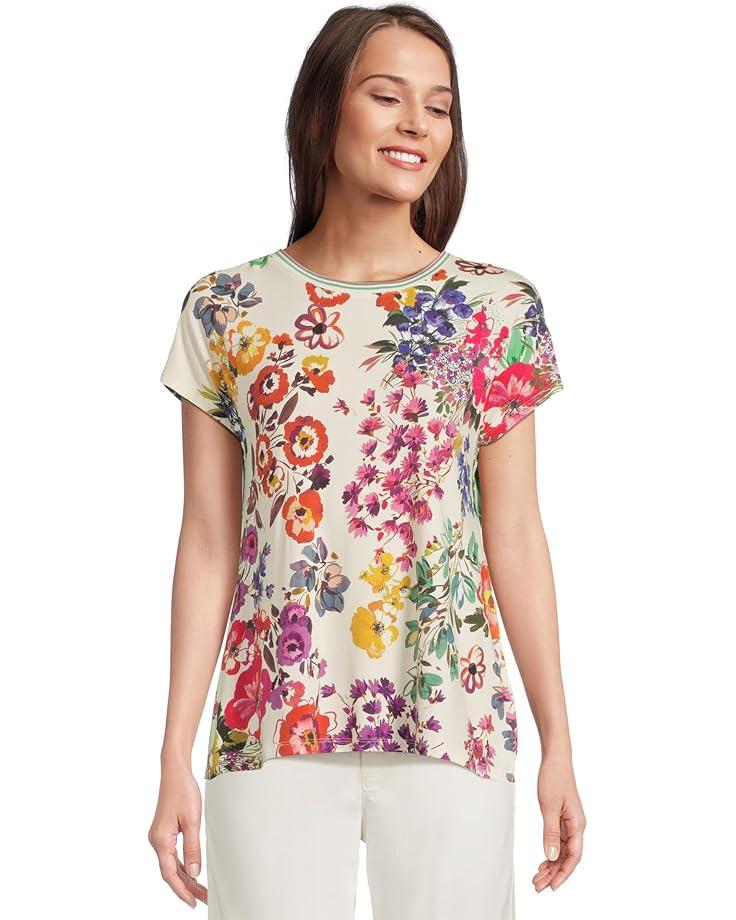 JOHNNY WAS Janie Favorite Floral Print Knit Crew Neck Short Dolman Sleeve Coordinating Tee