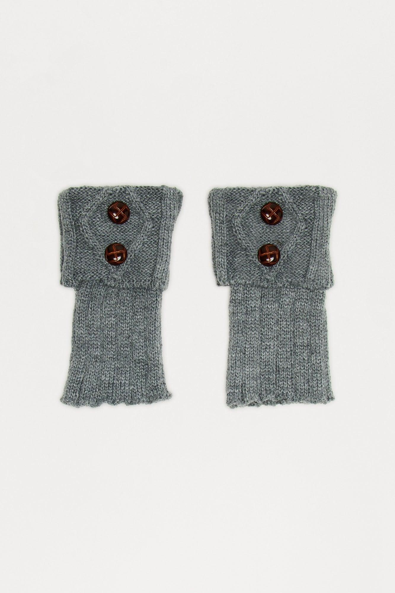 Available In Grey And Tan. Leg Warmers Poly Blend Material Cable Knit Pattern Button Detail 100% Acrylic Imported California Proposition 65WARNING: Cancer and Reproductive Harm - www.P65Warnings.ca.gov.
