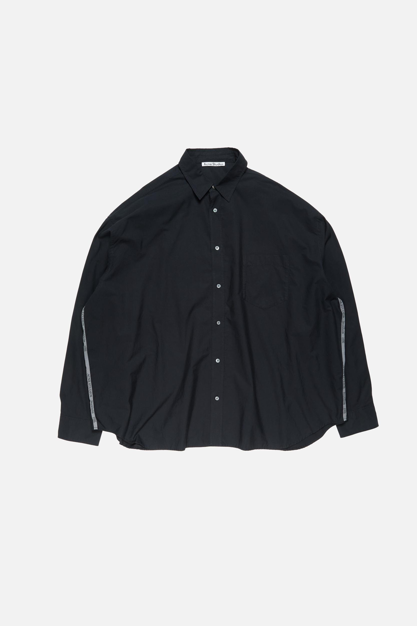 Button-up shirt crafted from light, airy cotton poplin, featuring a jacquard logo stripe detail along the inner arms. Finished with a chest pocket and cut to a relaxed fit and below-hip length. FN-MN-SHIR000905
