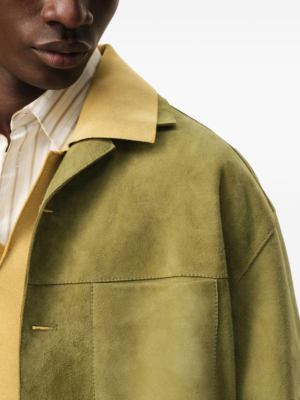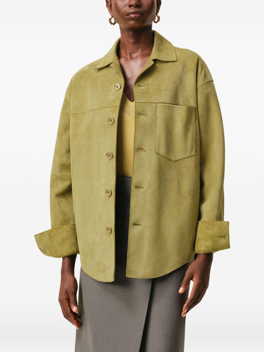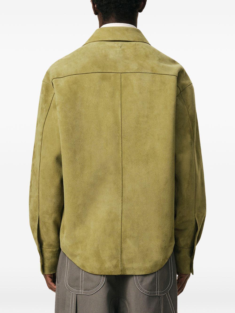 AMI Paris buttoned chest-pocket overshirt | Green | green | goatskin | side pockets | button fastening | topstitched logo | galalithe buttons | Goat Skin | Shirt Jackets | Jackets | Clothing | Men | Leather Jackets | Jackets | Clothing | Women