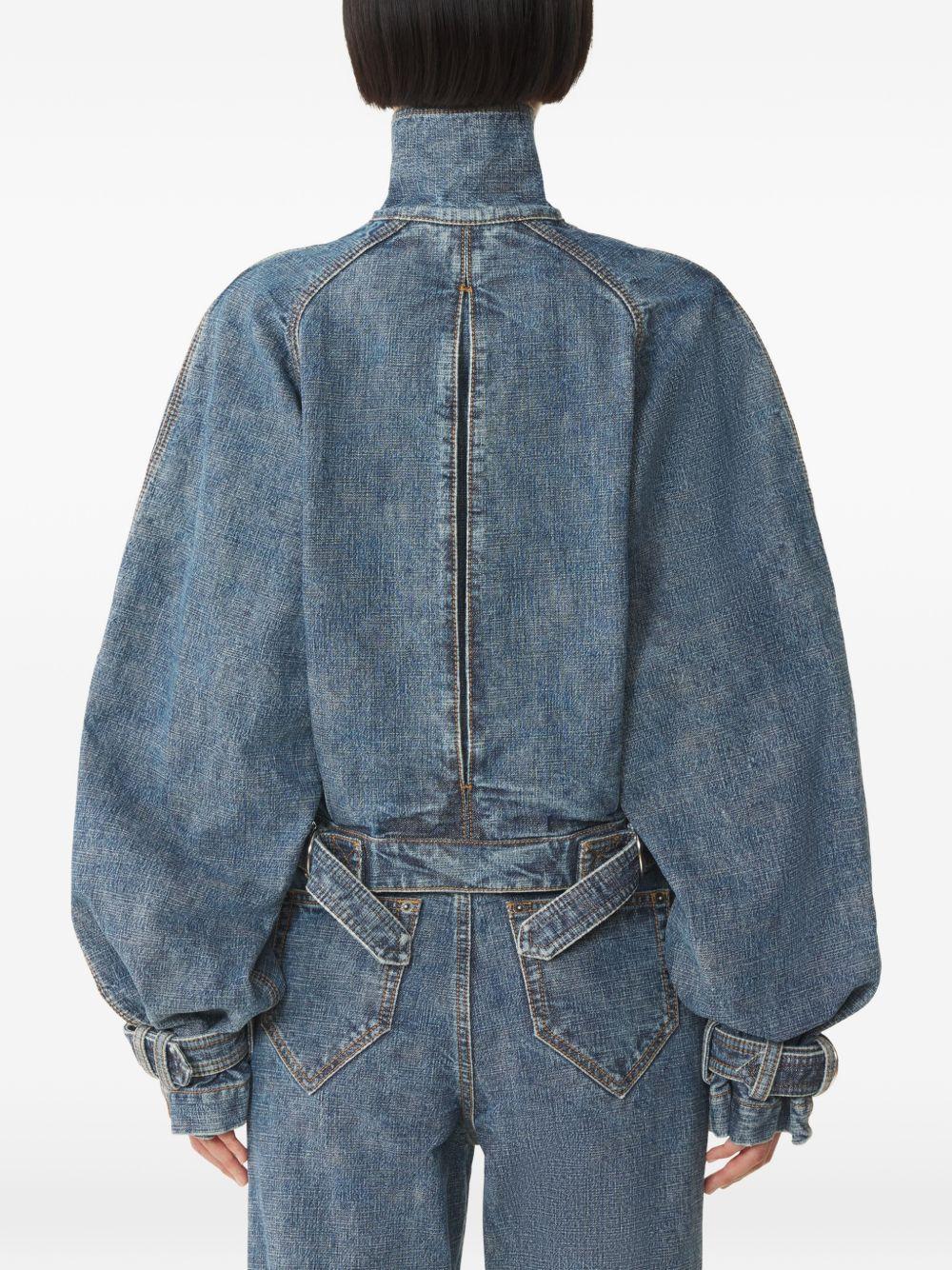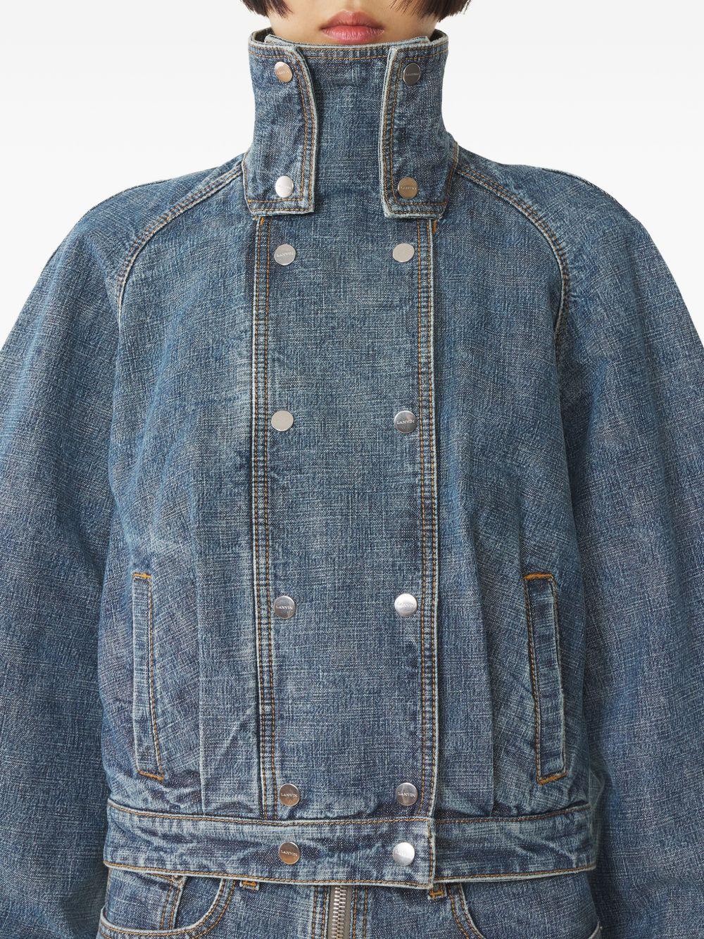 Lanvin buttoned funnel-neck jacket | Blue | light blue | button fastening | funnel neck | buckle straps | side pockets | Cotton | Denim Jackets | Jackets | Clothing | Women