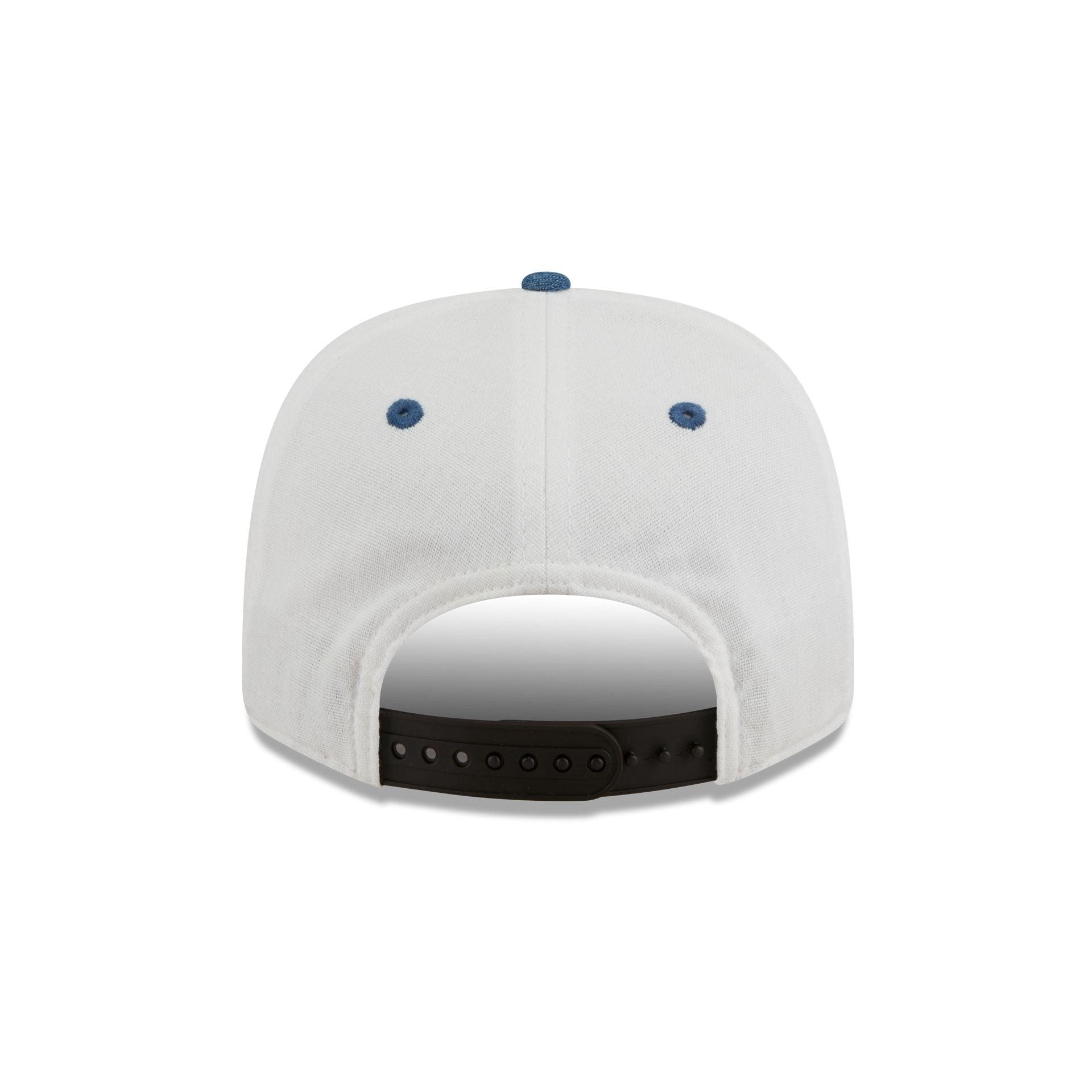 The BWT Alpine F1 Team 2025 Austin Race Special 9SEVENTY Stretch-Snap features a woven leather BWT Alpine F1 Team logo at the front panels with a matching 2025 Austin, TX and BWT patch at the right-wear side. Additional details include a denim visor, an adjustable stretch-snap closure at the rear and a brown undervisor.