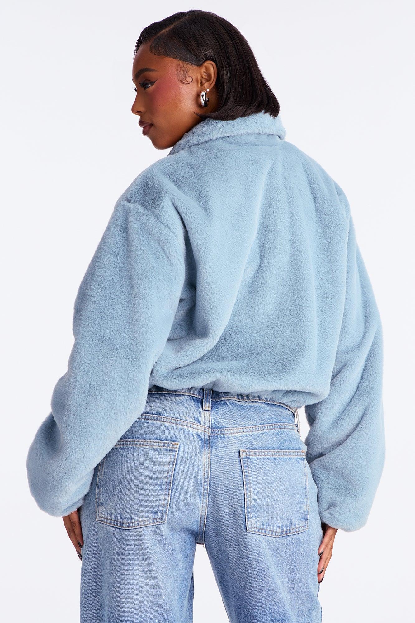 By My Side Faux Fur Bomber Jacket - Slate Blue Female