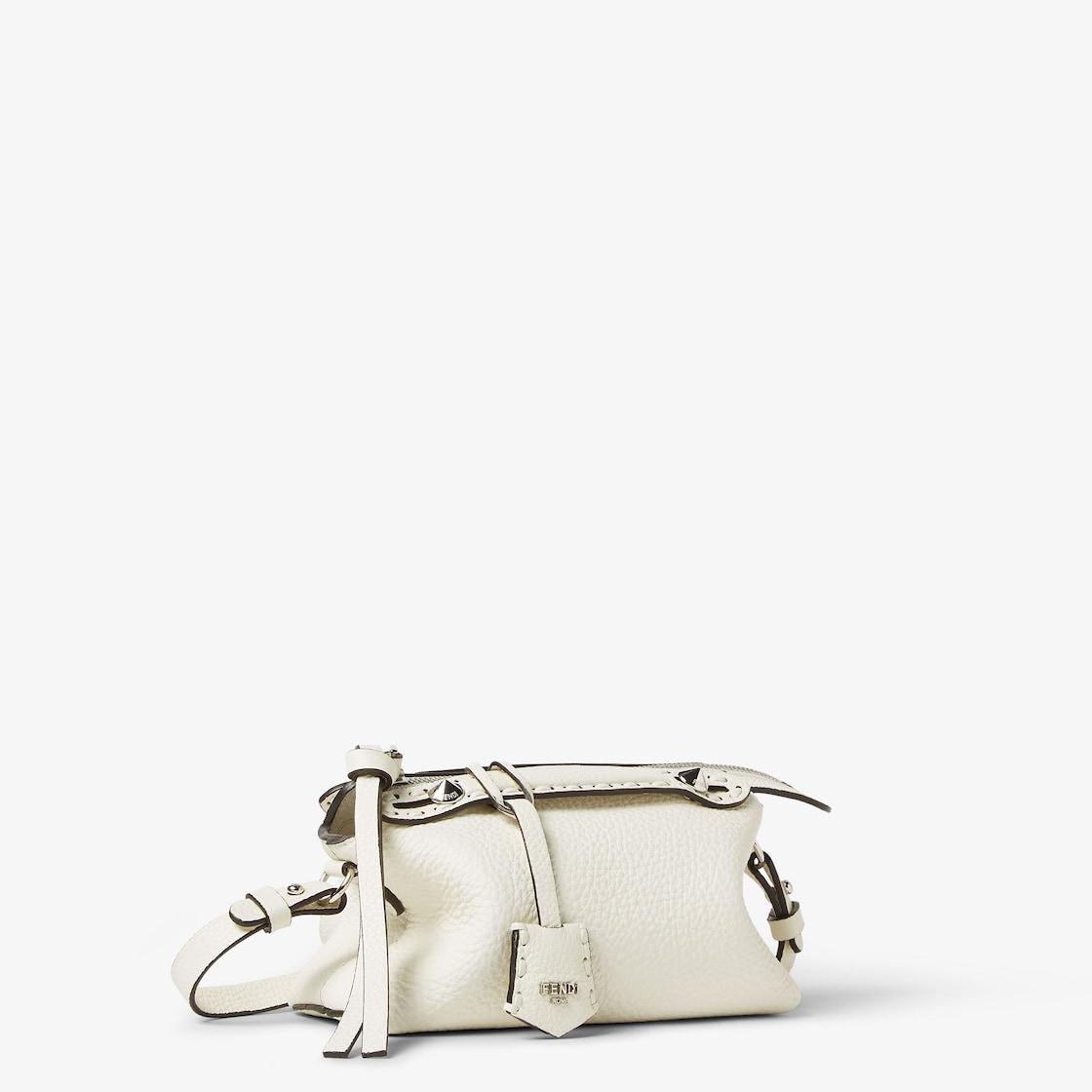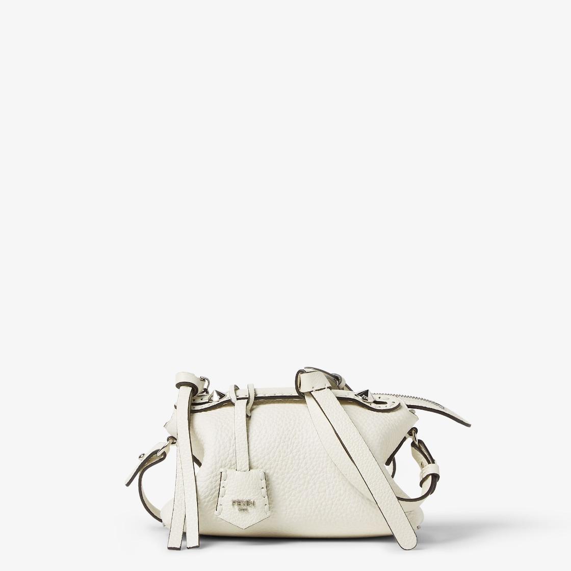 Iconic mini By The Way Selleria bag, reworked for the Fall-Winter 2024/25 fashion show for a relaxed, lightweight look. Made with 156 hand-sewn tone-on-tone macro topstitches, an emblem of the iconic Selleria workmanship handed down through generations of Fendi artisans since 1925. Made of white Cuoio Romano leather, calfskin with a characteristic natural grain, produced with a metal-free tanning process. Featuring a leather-lined interior, hand-stitched Selleria stamp in Cuoio Romano leather and palladium-finish metalware. Customizable pendant and long zipper-pull with knot. The bag can be carried by hand with the handles, or worn either on the shoulder or cross-body with the adjustable, detachable shoulder strap that can be knotted. Holds a 6.7-inch smartphone, Mini Trifold card holder or wallet, keys and lipstick. Made in Italy