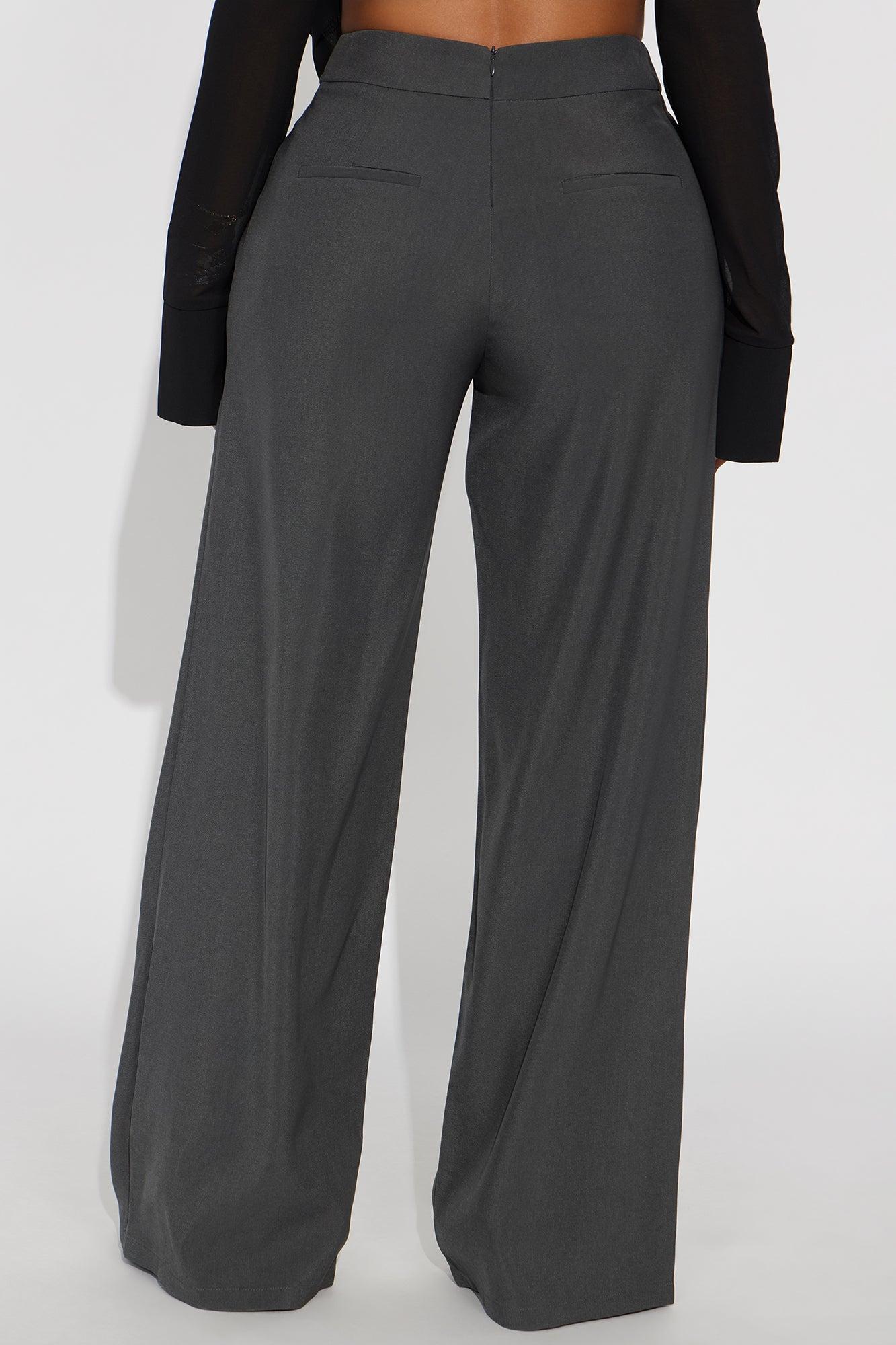 Available In Charcoal And Black. Trouser Pant High Rise Back Zip Closure Hand & Back Pockets Belted Pleated Front Wide Leg Non Stretch 32" Inseam 98% Polyester 2% Spandex Imported California Proposition 65WARNING: Cancer and Reproductive Harm - www.P65Warnings.ca.gov.