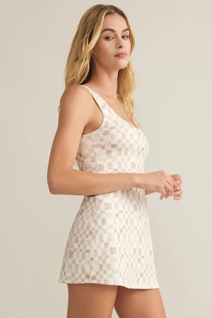 This scoop neck dress combines style and functionality with a body-skimming fit and bra-friendly wide straps. Made from our Pure Performance fabric, it features an interior bike short onesie with removable cups and convenient ball and card pockets, perfect for everything from active days to casual outings.