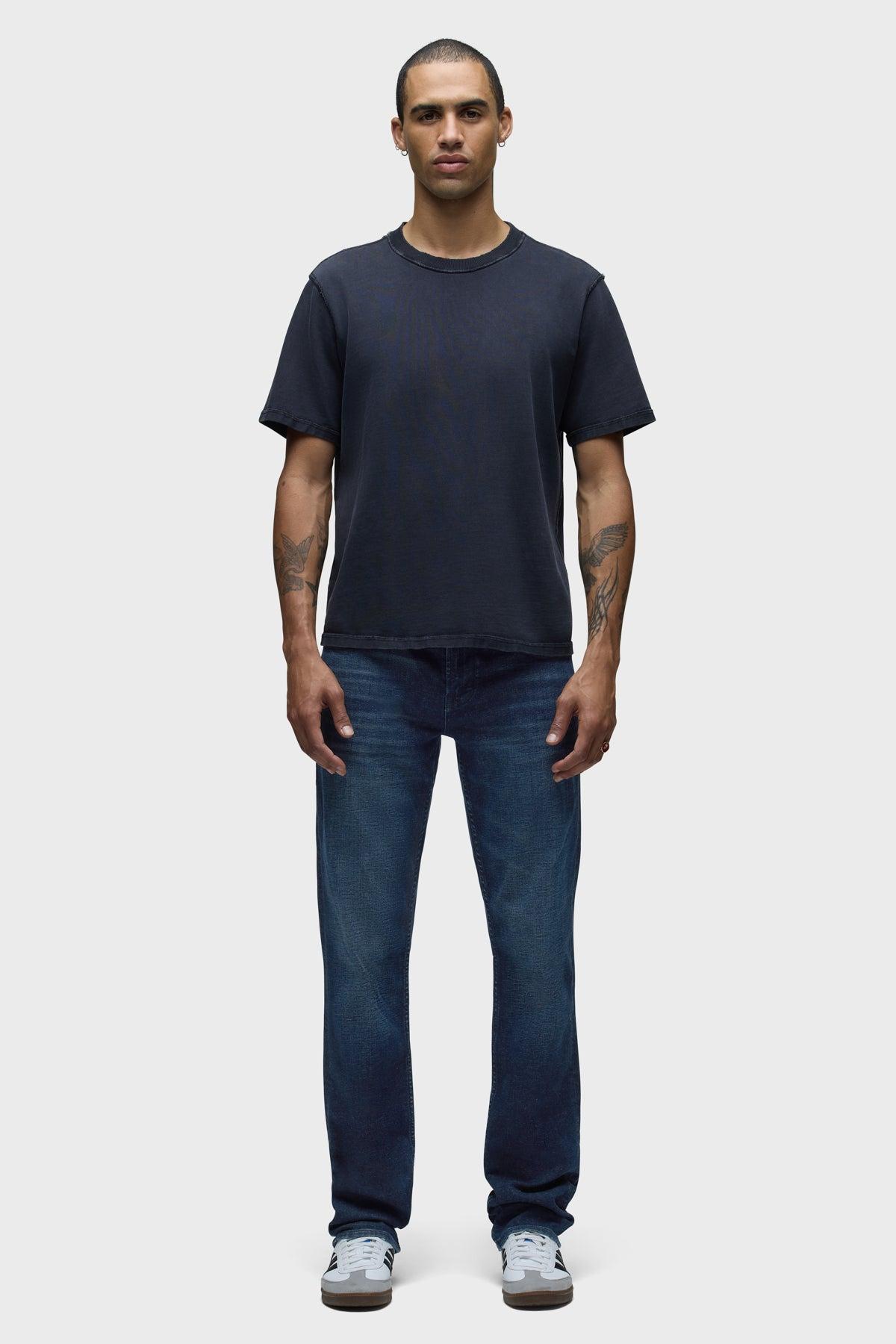 Description Byron is our most relaxed fit. Mid-rise, straight through the hip and thigh with a slim-straight leg. A classic. The dark enzyme indigo wash, Fallen, is finished with whiskering and edge grinding. This pair is made of premium stretch denim with classic five-pocket detailing and a 32" inseam. Product Details Front Rise: 10.25", Leg Opening: 15.5", Inseam: 32"Model Height 6’1"Model wearing size 32Measurements based on size 32 Fit & Care Content: 93% Cotton, 6% Elastomultiester, 1% ElastaneMachine wash cold with like colorsDo not bleachTumble dry low or hang to dry