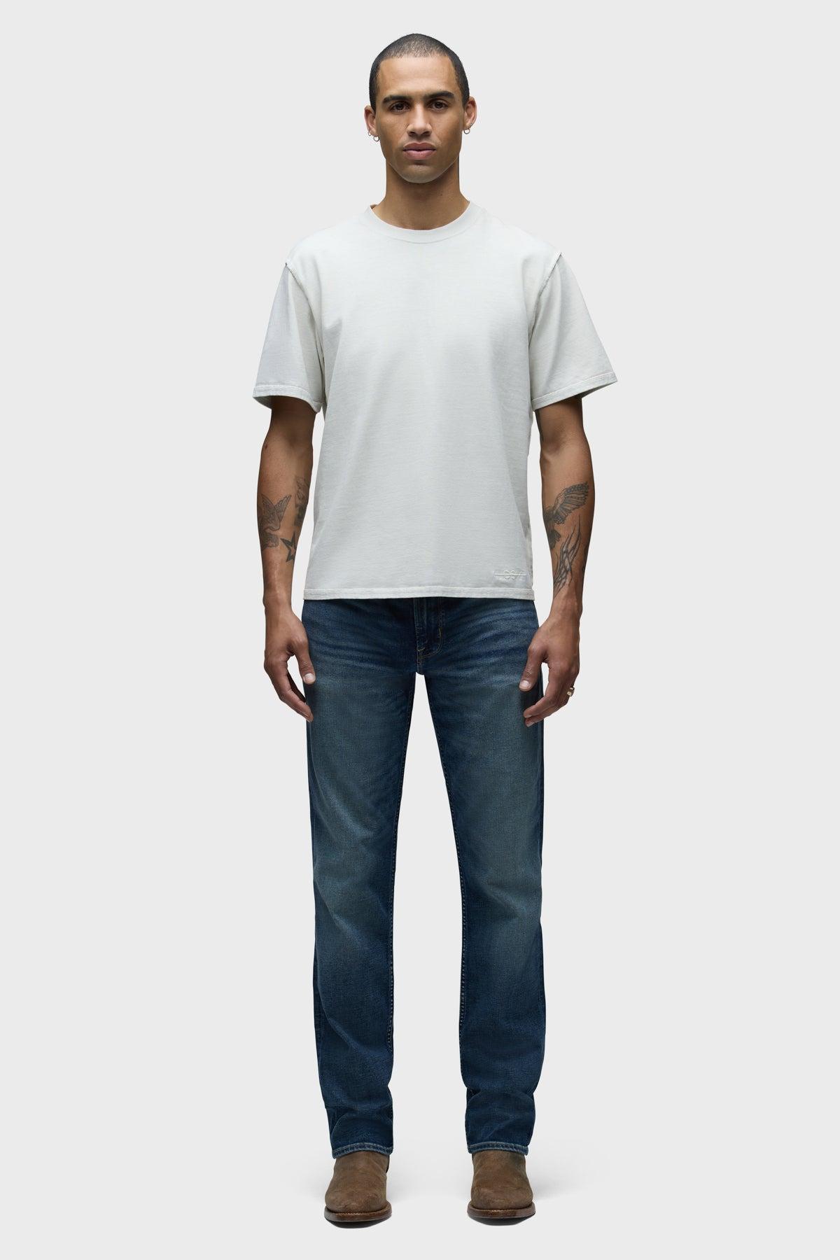 Description Byron is our most relaxed fit. Mid-rise, straight through the hip and thigh with a slim-straight leg. A classic. The medium Station wash is cut from our premium stretch denim so the jeans keep their shape. Product Details Front Rise: 10.25", Knee: 17", Leg Opening: 15.5", Inseam: 34"Model Height 6’1"Model wearing size 32 Fit & Care Content: 93% Cotton, 6% Elastomultiester, 1% ElastaneMachine wash cold with like colorsDo not bleachTumble dry low or hang to dry