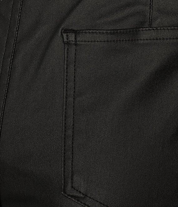 From C&V Chelsea & Violet, these pants feature: Coated denim fabrication Button/zipper center front Full length Flare leg Rayon/nylon/spandex Machine wash cool/dry flat Imported.