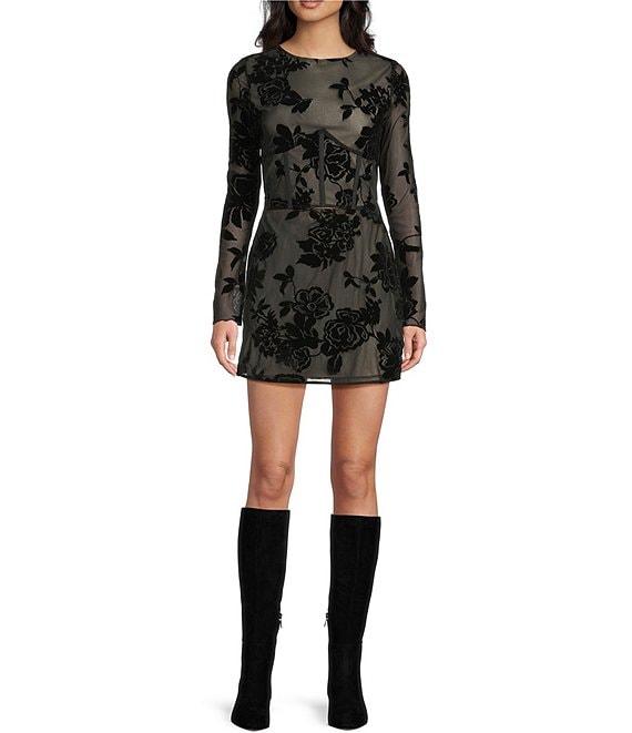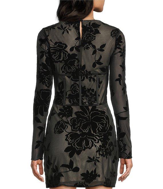 C&V Chelsea & Violet Round Neck Long Sleeve Flocked Mesh Coordinating Corset Top